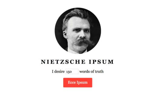 In a much more philosophical wavelength, this text generator will create texts inspired by Nietzsche's theories. Ideal for projects that require extra seriousness.