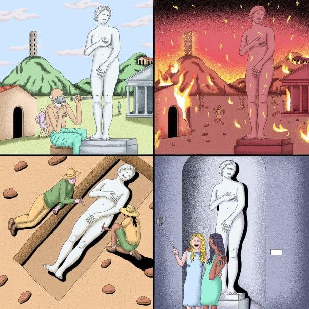 Valerio Vidali’s work is somewhat magnetic, which is unusual in our days of dizzyingly fast image consumption. He encourages us to enjoy his work at the speed at which he created it, i.e., very slowly. He establishes a tactic pact with the viewers by compelling them to relax, open their minds, and commit to the pace needed to enjoy his illustrations.