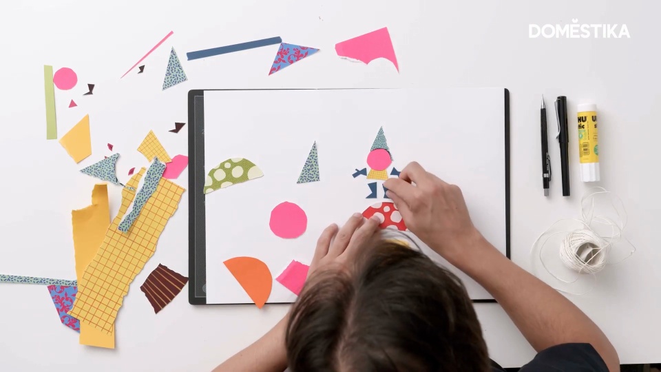 Consider the basic shapes as you’re sticking as this will help create something that’s a little different from what you’re used to seeing and doing. Stick everything down, then start adding details using other techniques, like marker pen or pencil.