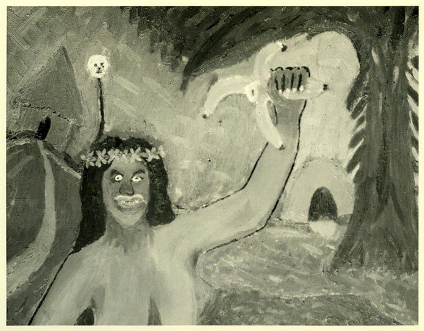 Novelist Paul Jordan-Smith was not satisfied by inventing just one artist and conjured up an entire art movement. After his wife Sarah Bixby Smith's realistic still lifes had been poorly received by critics, Jordan-Smith decided to seek revenge. In 1924, he picked up a paintbrush for the first time in his life and painted the piece called "Yes, we have no bananas," later renamed "Exaltation." He presented it at the Exhibition of the Independents at the Waldorf-Astoria in New York, under the guise of Pavel Jerdanowitch, the creator of a new art style called "Disumbrationism."
