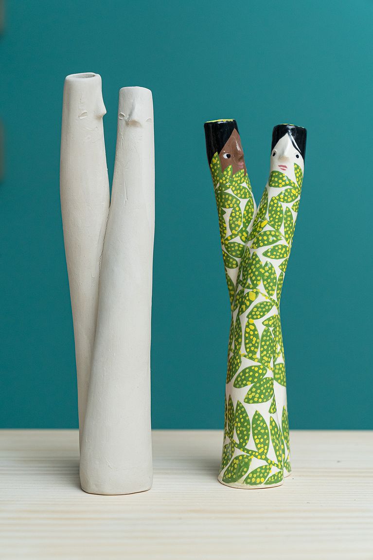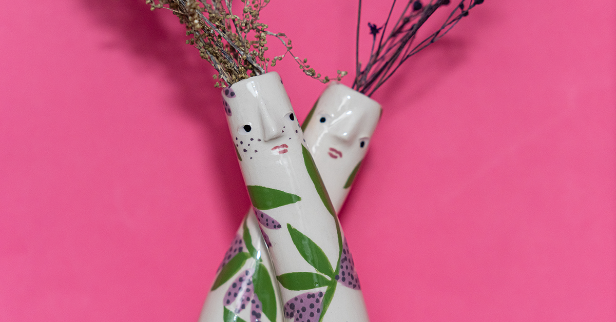 This vision is shared by Sandra Apperloo (@thepotteryparade), a ceramist who has not only found great joy in the craft, but also made it her full-time profession. Her brand, known as The Pottery Parade, is filled with quirky faces and pastel hues, has over 100K followers on Instagram, and has been featured in magazines like This is Colossal, ArtPeople, and more.