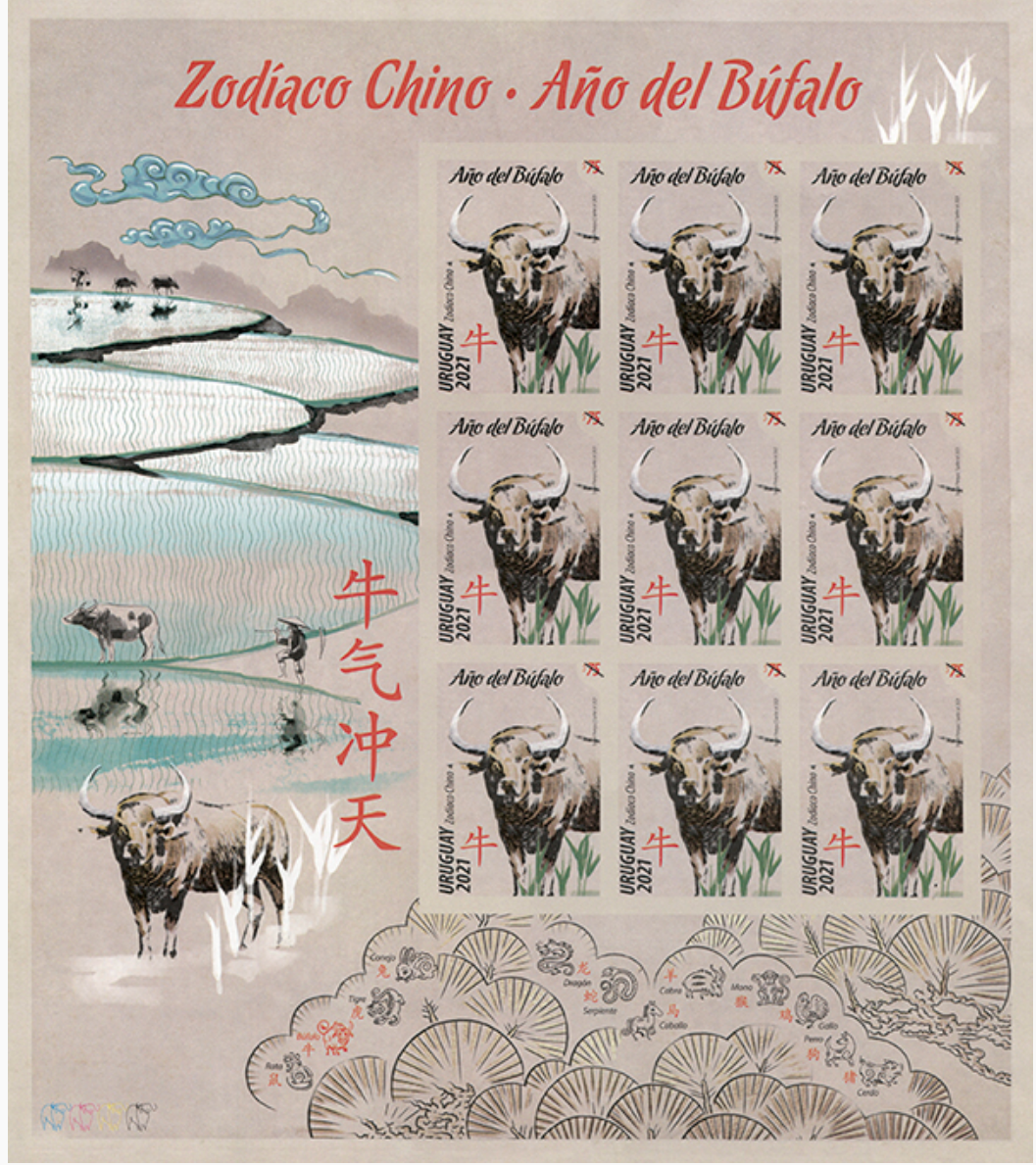 The Uruguayan Postal Service has issued a stamp on the occasion of the Chinese New Year every year since 2015, which is usually presented with a special event celebrating the culture of that country. Through this stamp designed by the architect Daniel Pereyra, in the year of Buffalo, the country expresses its intention to strengthen its philatelic link with the largest population in the world, which also has 10 million philatelists.