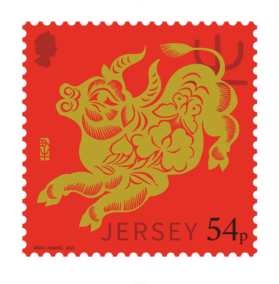 Huming also designed the commemorative stamp of the celebration for the Channel Islands Jersey Post which was printed with metallic gold foil and varnish.