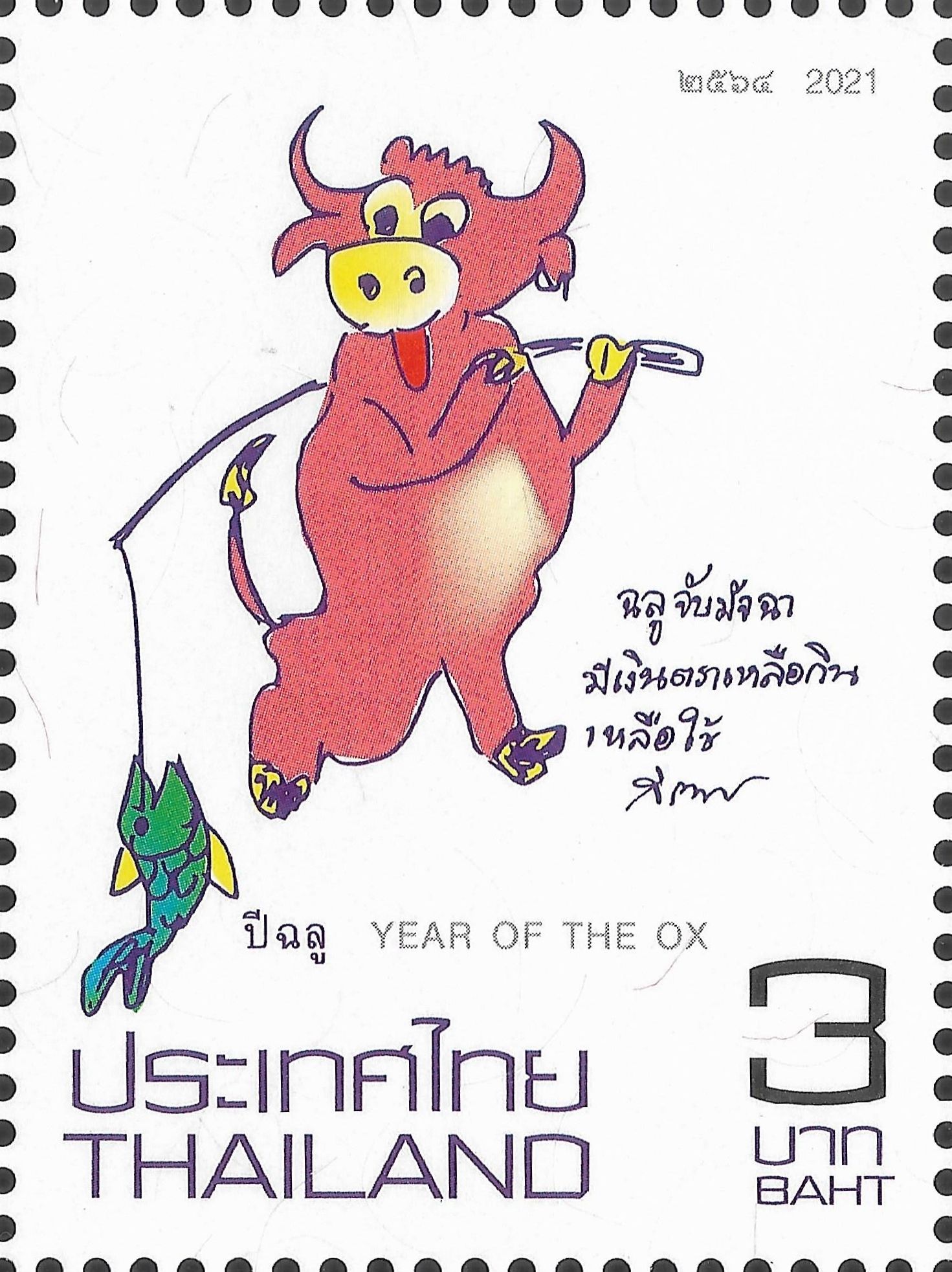 Thai princess Maha Chakri Sirindhorn is known for her work in education and social development and also for collecting postage stamps. Her hobby is so dedicated that it has earned her the title of Princess Stamp Collector. On the occasion of its 125th anniversary, Thailand Post Company Limited was honored to use one of Her Royal Highness paintings in a special stamp collection. Now he collaborates with her again on this postcard that commemorates her year of the Buffalo.
