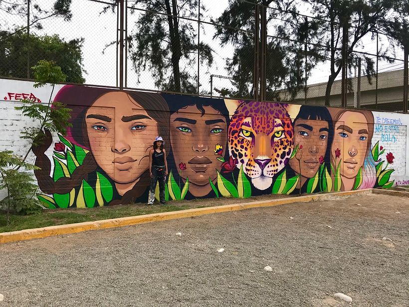 Fefa Cox (@fefacox) is a Peruvian muralist, artist and illustrator. She has worked with brands including: Nike, MAC, Falabella and L’Oreal, and painted murals across the US, Spain and Peru.