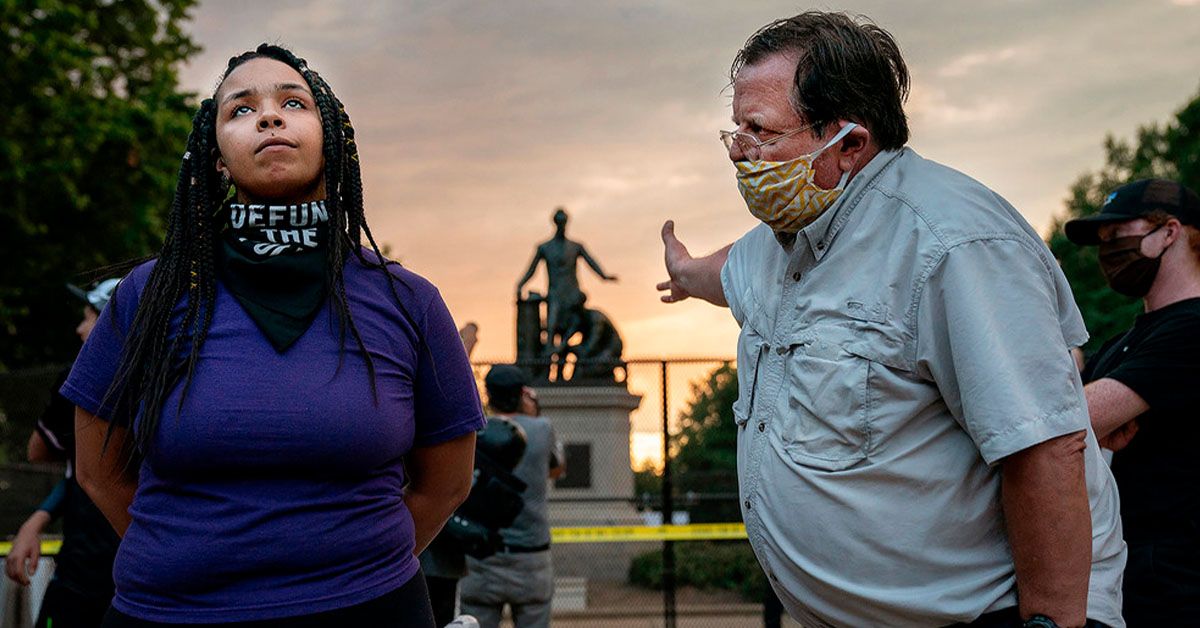 Evelyn Hockstein is a photojournalist based in Washington, DC, and the only woman to be nominated for World Press Photo of the Year 2021. The nominated photograph, Emancipation Memorial Debate, was awarded the first prize in the singles Spot News category. It shows a white man disagreeing with a Black woman about the removal of the Emancipation Memorial in Lincoln Park.