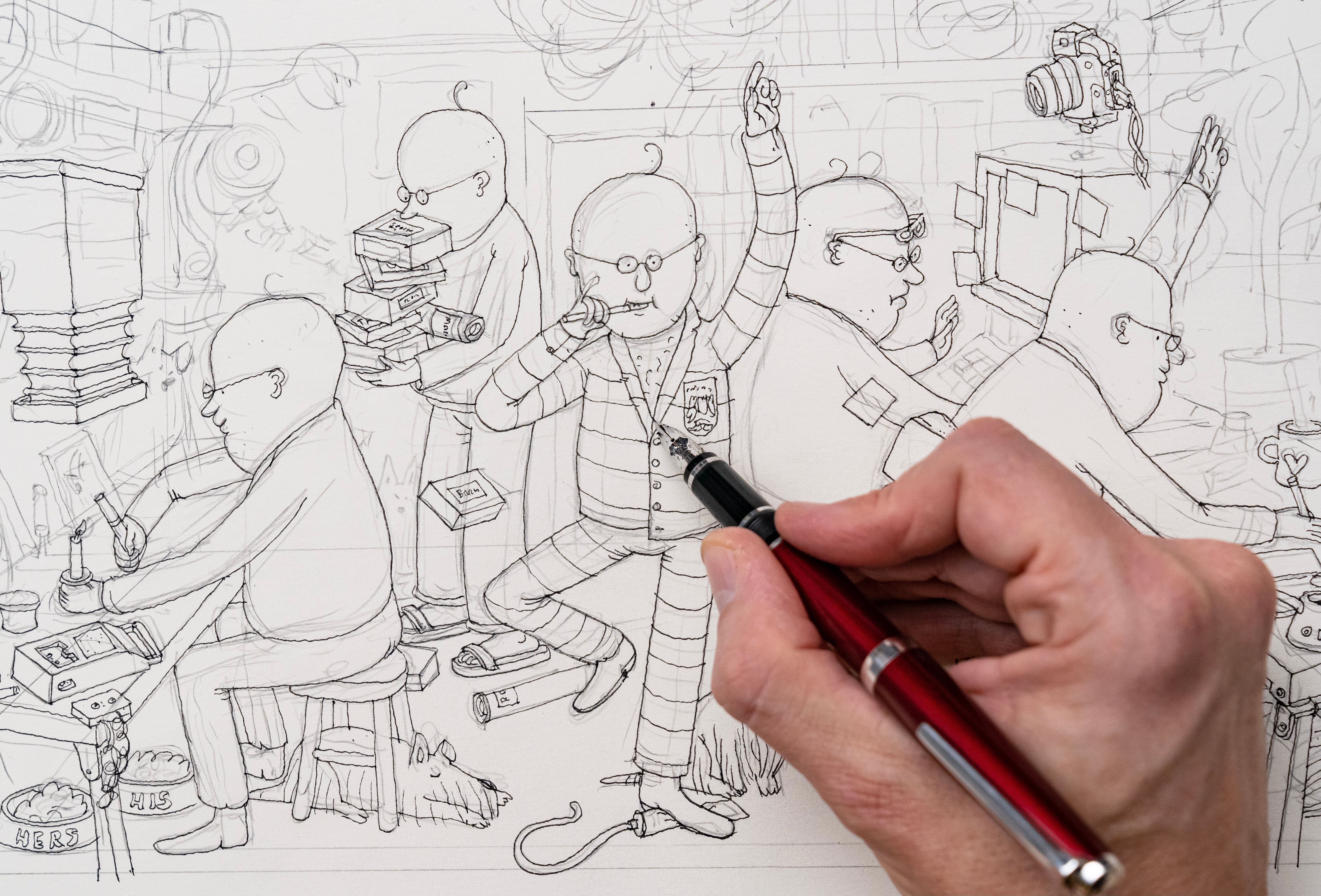 His sketches are intricate, yet he manages to create harmonious and balanced compositions that invite the viewers to observe each little detail up close. Mattias found inspiration in Chinese art and oblique proportion perspective to help him achieve volume in his drawings.
