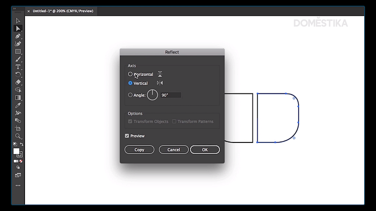 Select Direct Selection Tool to adjust the shape. Now you have selected your tool, use SHIFT + ALT to click and drag the shape to one side.