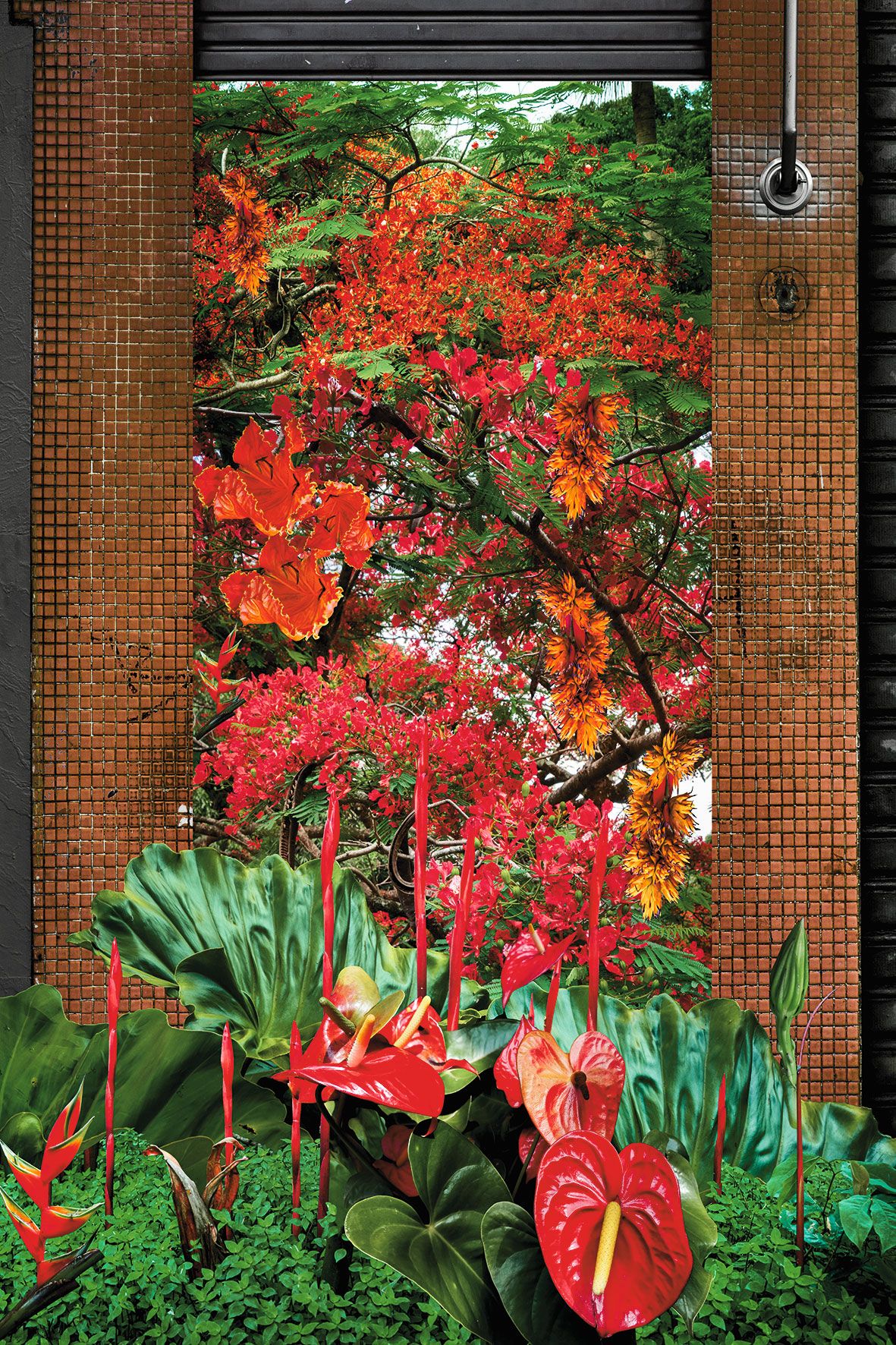 For example, her Jardins Imaginários series combines an urban or degraded background with plants and natural elements. Cláudia explains that she didn’t take the photographs of these plants with the final work in mind, but that the concept came to her gradually, through analyzing her archives and the opportunities to bring the work to life.