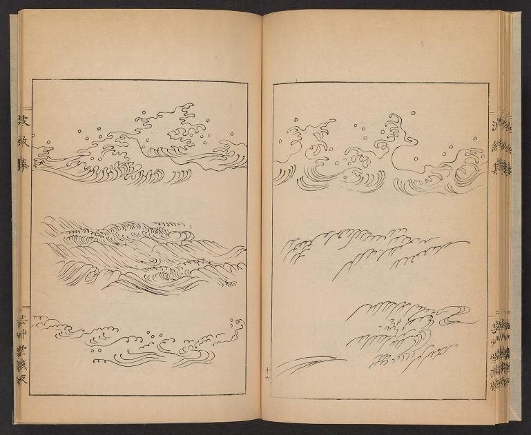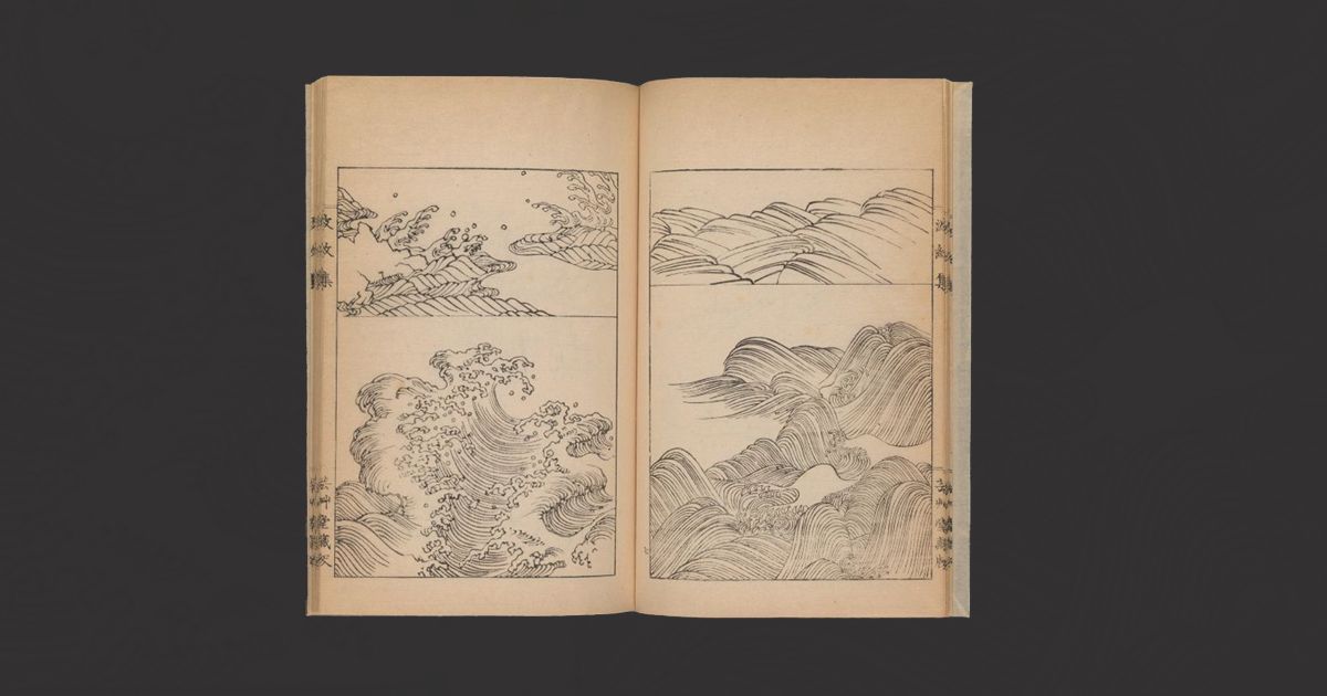 The ocean is incredibly hypnotic. Outlining the silhouette of a wave for an illustration requires letting the brush glide almost freely across the page. In Japanese art, waves express beauty and are packed with symbolism, and Hamonshū, a collection of three books from 1903, includes many great examples. Despite not being very well known, author Mori Yuzan demonstrates a unique ability to draw different types of waves with great accuracy.