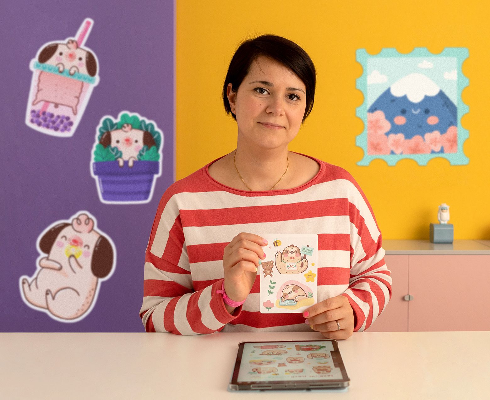 To get started in Kawaii illustration, check out Ilaria Ranauro's Domestika course, Kawaii Illustration: Create Charming Characters, in which you'll learn how to turn your cute characters into stickers by combining digital and analog techniques.