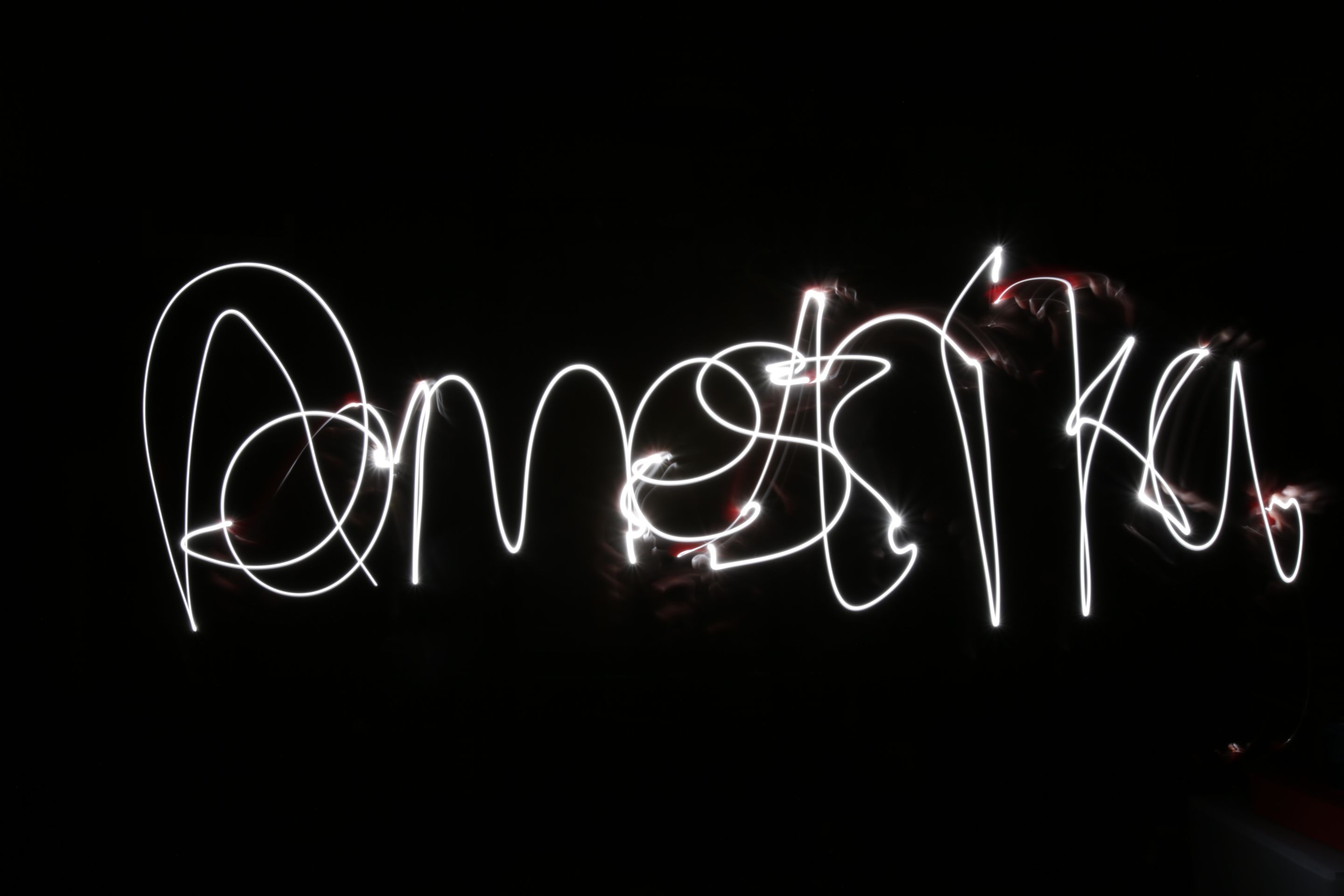 Everything has to be mirrored, so it can be tricky and will require you to play around with the shutter speed as you go. Here's an example of how I created my "Domestika" light painting, with a few tips along the way:
