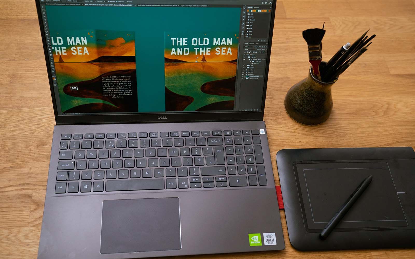 In his course, Owen explains the process of selecting important information from a book, such as descriptions, places, atmosphere, and of course important events in the plot. He also goes in-depth into the elements of good composition and how to expand on an idea using thumbnails. But once you have your artwork prepared, it’s time to head into Photoshop and lay out the essential information that readers need to know.