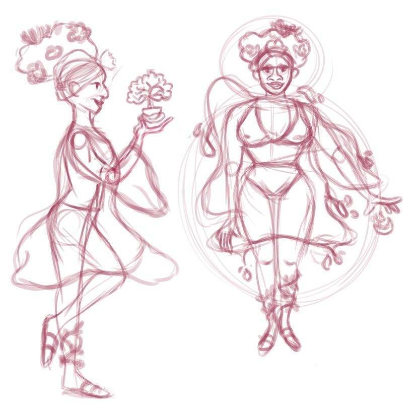 the colours are earthy and cool because she brings so much life to her enviroment.