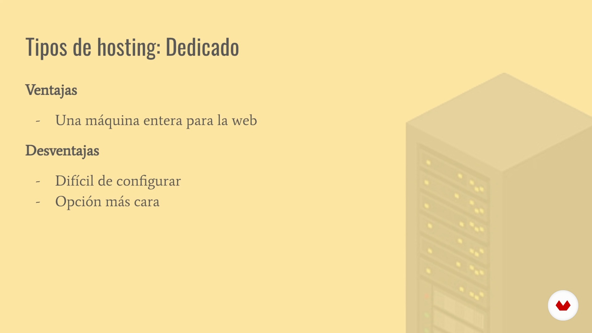 “When selecting a hosting many factors influence and we can get lost among so many offers. After this lesson, you will know what each type of hosting is for and we will study three companies and what they offer. ”