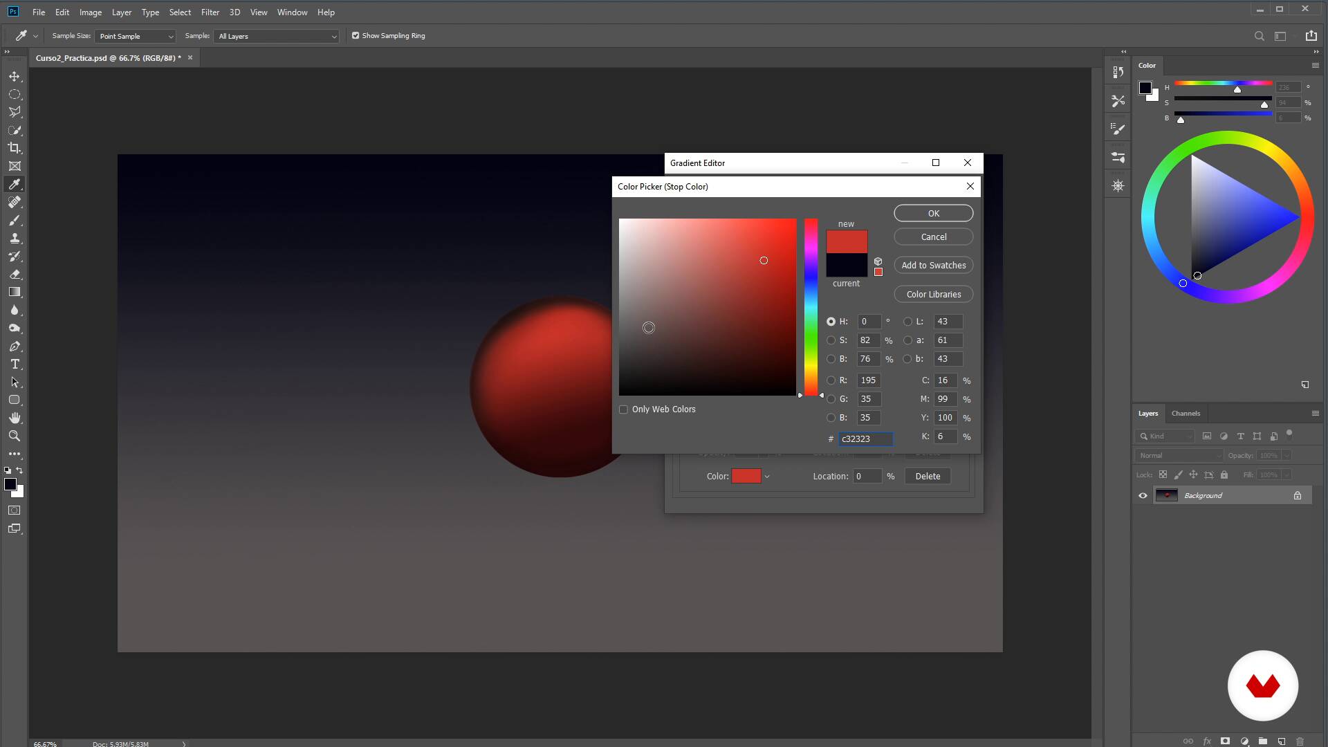 Course 2 - Getting to Know Adobe Photoshop: Practice: creation of a floating sphere