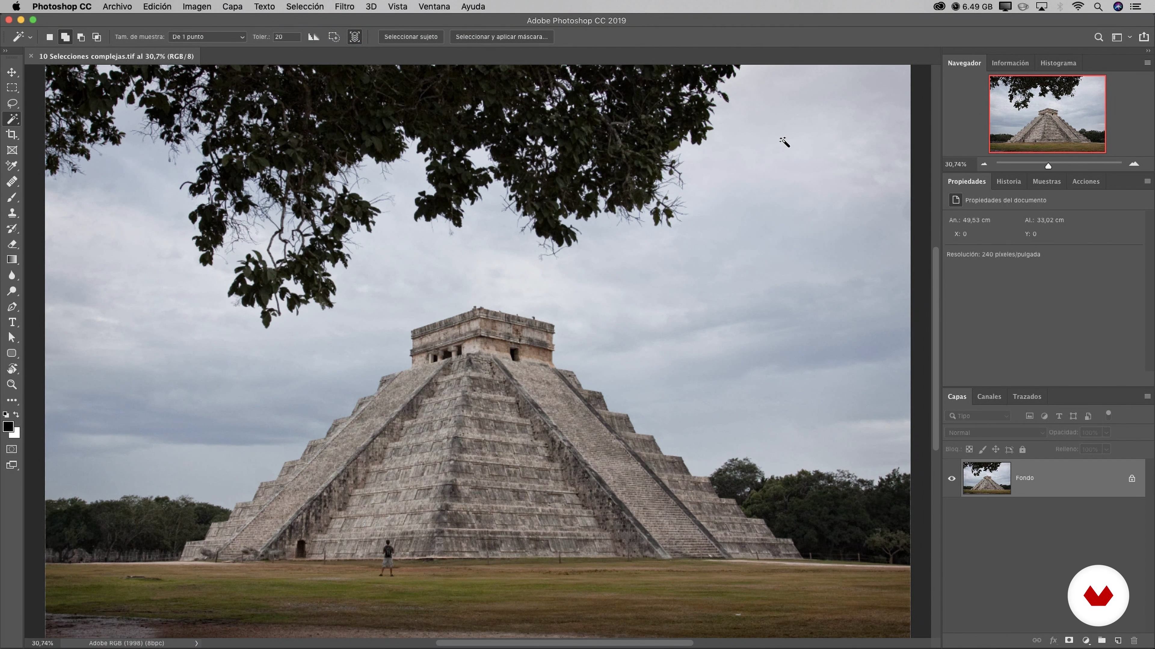 “How would you select a sky surrounded by the branches and leaves of the trees? In this practice you will learn to make, in a few seconds, a very complex selection that could take hours. Don't forget that the toolbar of each tool offers you excellent alternatives, and that you can use different selection tools so that your selections are perfect. ”