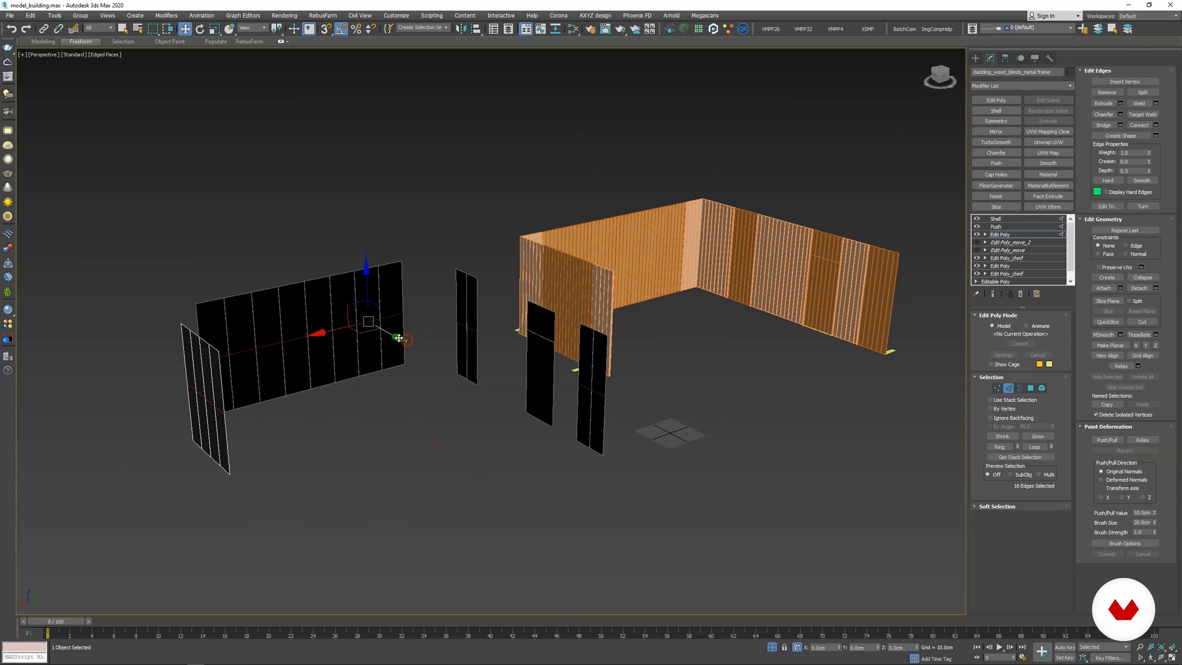 “In this lesson, I will show you how to model the steel construction of the blinds and position them together with cladding elements using the Edit Poly modifier. ”