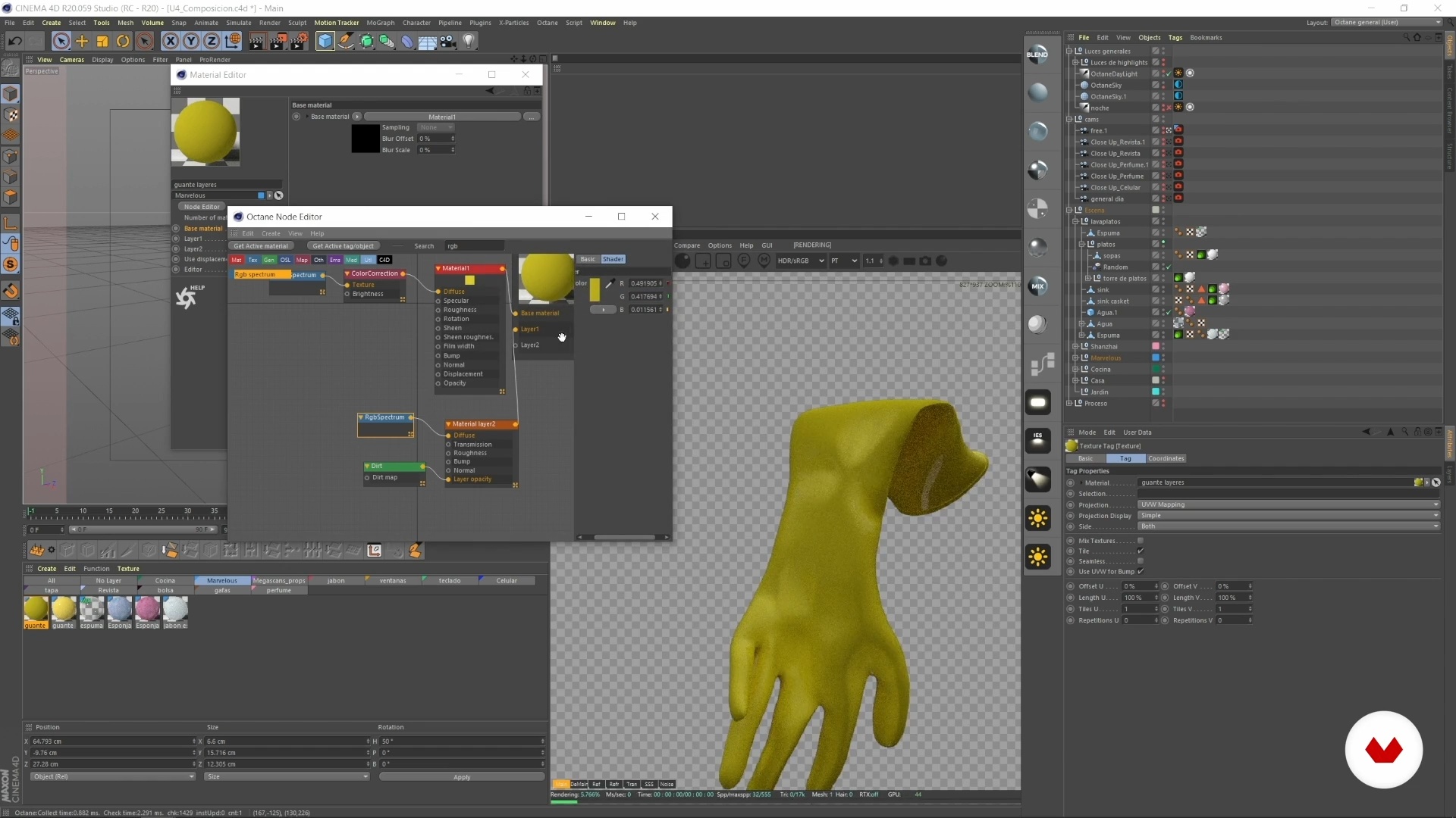 “Now let's review other things from the scene or important tricks for example if you noticed this bubble we are going to isolate it I lost the telefontas of the vertex based on the fact that it is very difficult to collapse ok so we have this bubble in the bubble how did i get it let's go find it For that I also based on the tutorial of the Pentakmar boys to create a bubble of bubble material inside obtain but as of not of obtain in cinema but of obtain standalone so I'm going to pass you the link basically what I did was how to interpret how did they build the material within these nodes an...”
