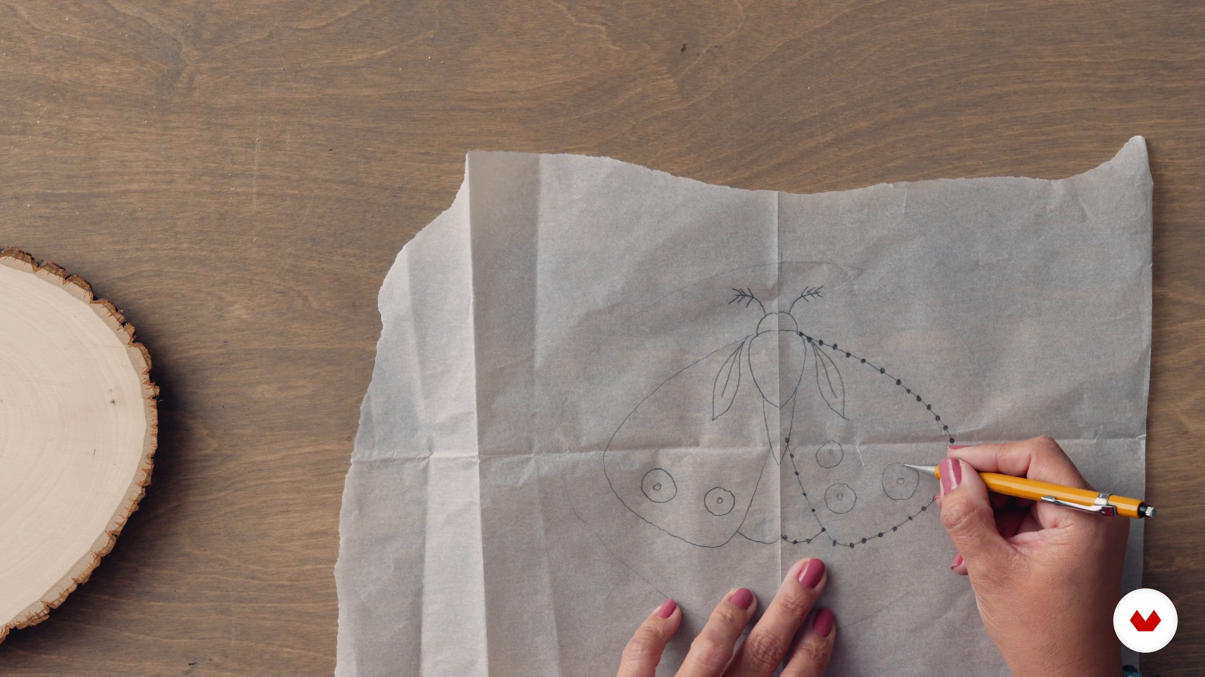 “ Embroidery Pattern We went through defining your pattern using Procreate. If you don't have a tablet or you don't have access to Procreate, we can also create this using pen and paper. Actually, using tracing paper and a pencil. Now, I'll show you how I would go about doing that. I will have my tracing paper, my pencil, and the piece of wood that I'll use. It's almost the same concept. We need to define our working area. With the tracing paper, you could easily trace out very roughly. Your overall shape doesn't need to be exact. After you have the initial sketch of your outline, you could...”