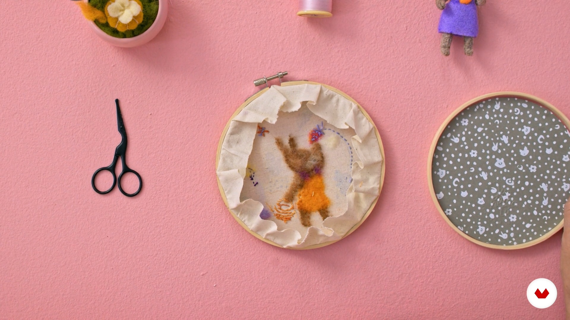 In this video lesson Juanamatú (Katerin J Gómez) addresses the topic: Finishing, which is part of the Domestika online course: Textile Illustration with Acrylic, Felt, and Embroidery. Learn how to create original illustrations using mixed techniques, from painting with acrylic on fabric and felting with wool, to finishing it all off with embroidery.