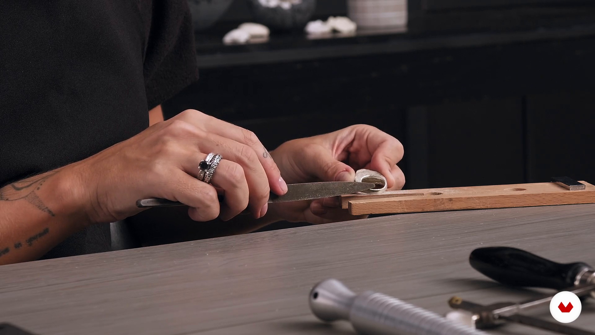 “In this class, I'll show you some finishing tools and how to use them to finish your jewelry. You will also see, as I have been commenting, that in my work I like to highlight the imperfect, because I attribute a beauty that is often hidden to jewelry. Therefore, each process of creating a jewel is extremely important, as I like to leave these “marks” that tell the story of the piece.”