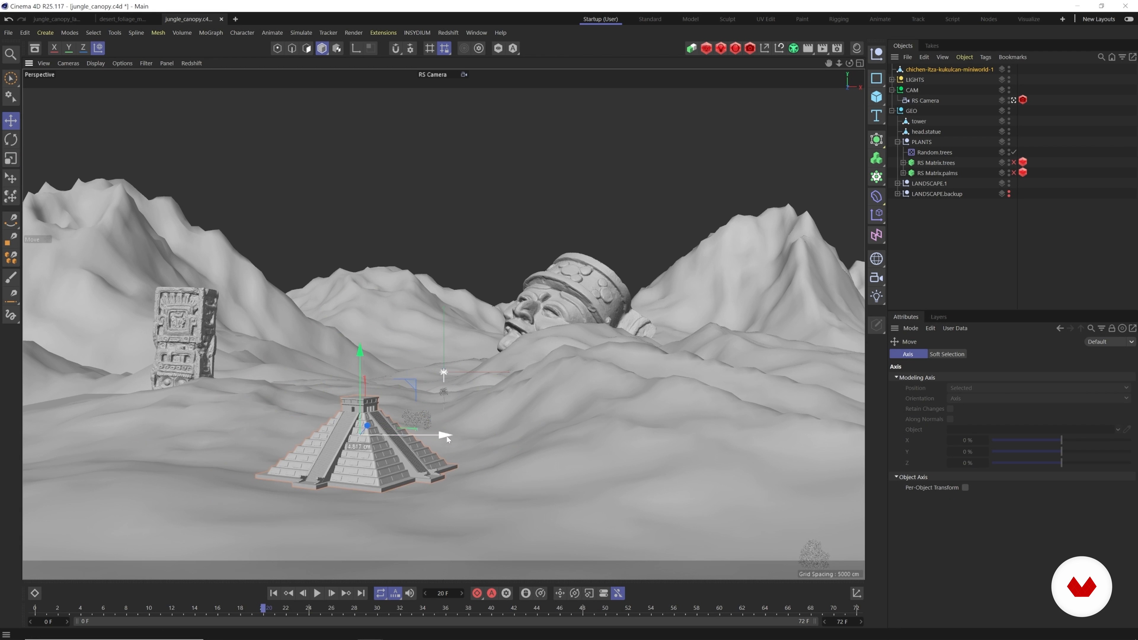 “Now that I know which ruins I'd like to add—including statues, pyramids, and temples—I will finish scaling and positioning them in my landscape. Once I'm happy with the composition, I will show you how to add texture to these objects.”