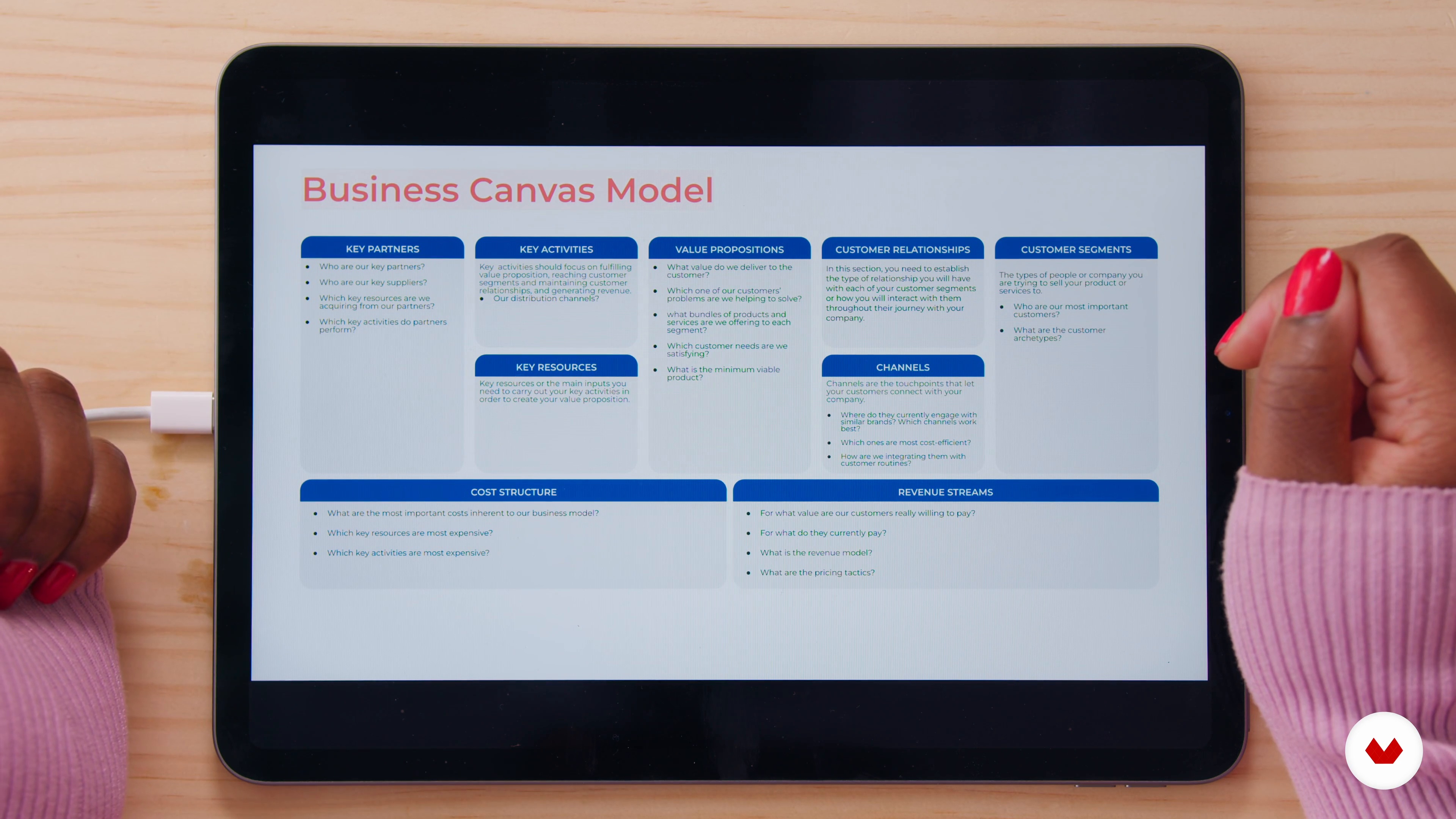 “So in this lesson, we're going to look at the business model, and we're going to use the business model canvas to help guide us. So now you have a clear understanding of the industry that you're entering. You have a clear picture of who your potential customer can be. And now we're going to think about how the business is going to operate. So this is the business canvas model, which is more or less a snapshot of a very simple business plan. And these are things that you should start thinking about in order to understand how your business is going to operate. So starting at the top, we have ...”