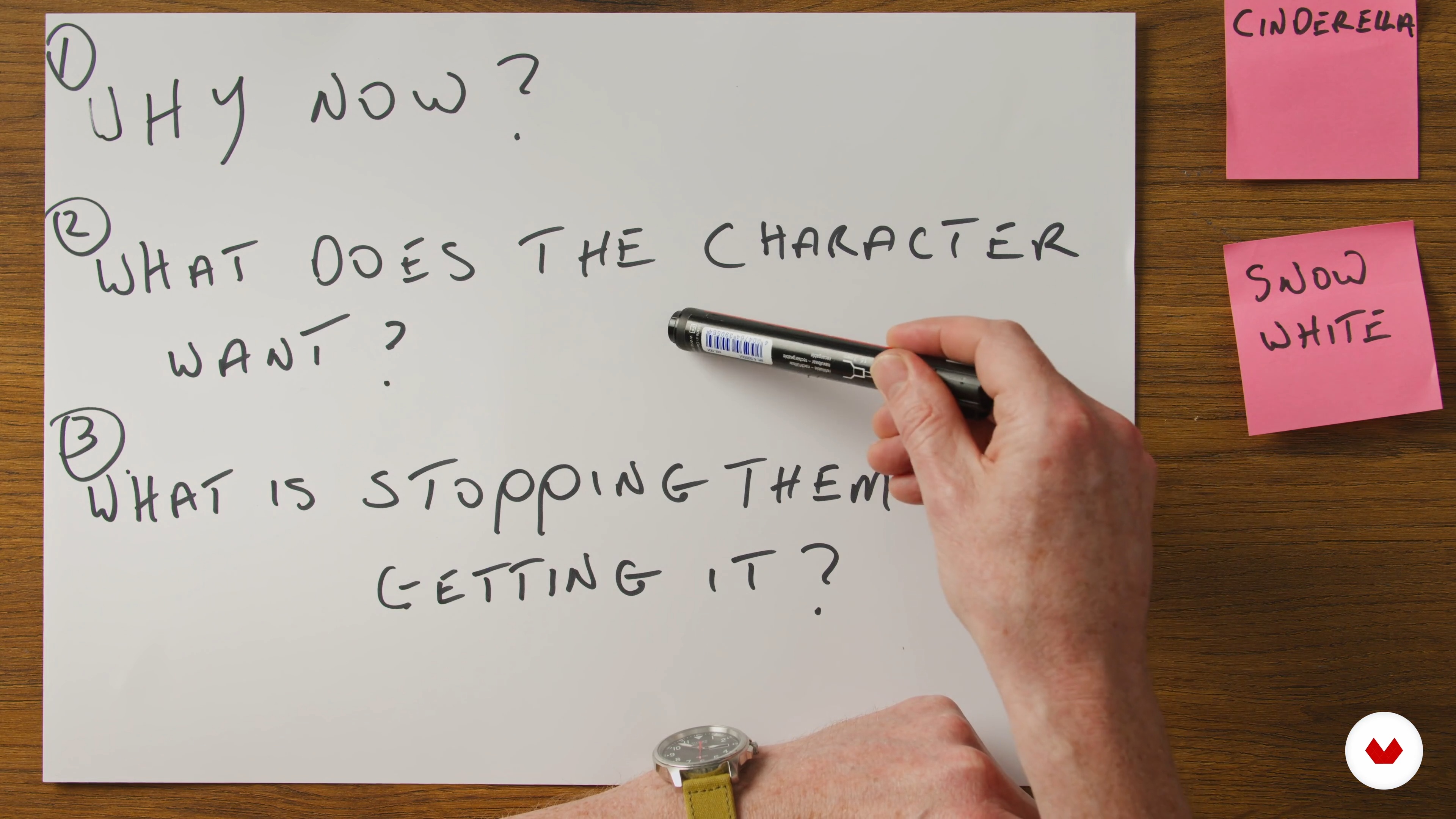 “In this lesson, you will learn the three essential questions every playwright should ask to make their play work. To do this, we will look at some fairy tales. and break down their story. the three essential questions. That you should ask for every story are one, Why now? Two. What does the character want? And three. What is stopping them from getting it? The first Fairy tale we're going to break down is Cinderella. Cinderella is a slave to her stepsisters and stepmother. Every day is the same. But why is today different? Why does the story start? The first question. Why now? And the answer...”
