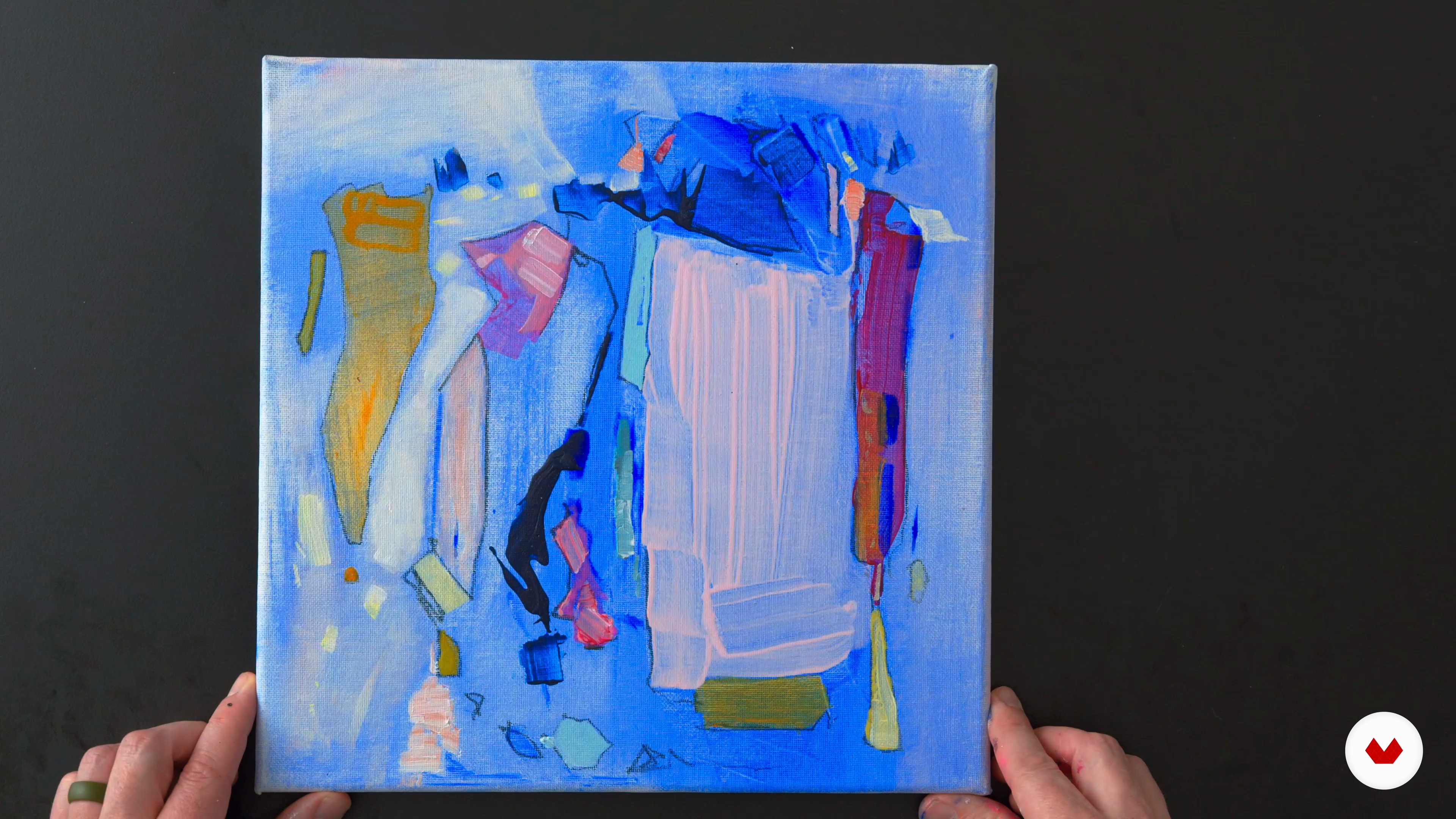 “So in this lesson, I'm going to show you the third piece that I've worked on. And this one is already finished, so you'll get to see what it looks like. in all of its glory. So all the color that I wanted to use, and no holding back. Talk a little bit about what I feel like is working, what does what makes this piece look Good. So instead of showing you all of the things that I did to this piece, i wanna just sort talk through some of my decisions. what I'm really enjoying, what I feel like were opportunities. and how I capitalized on the composition. To start with, I had a blue base. This ...”