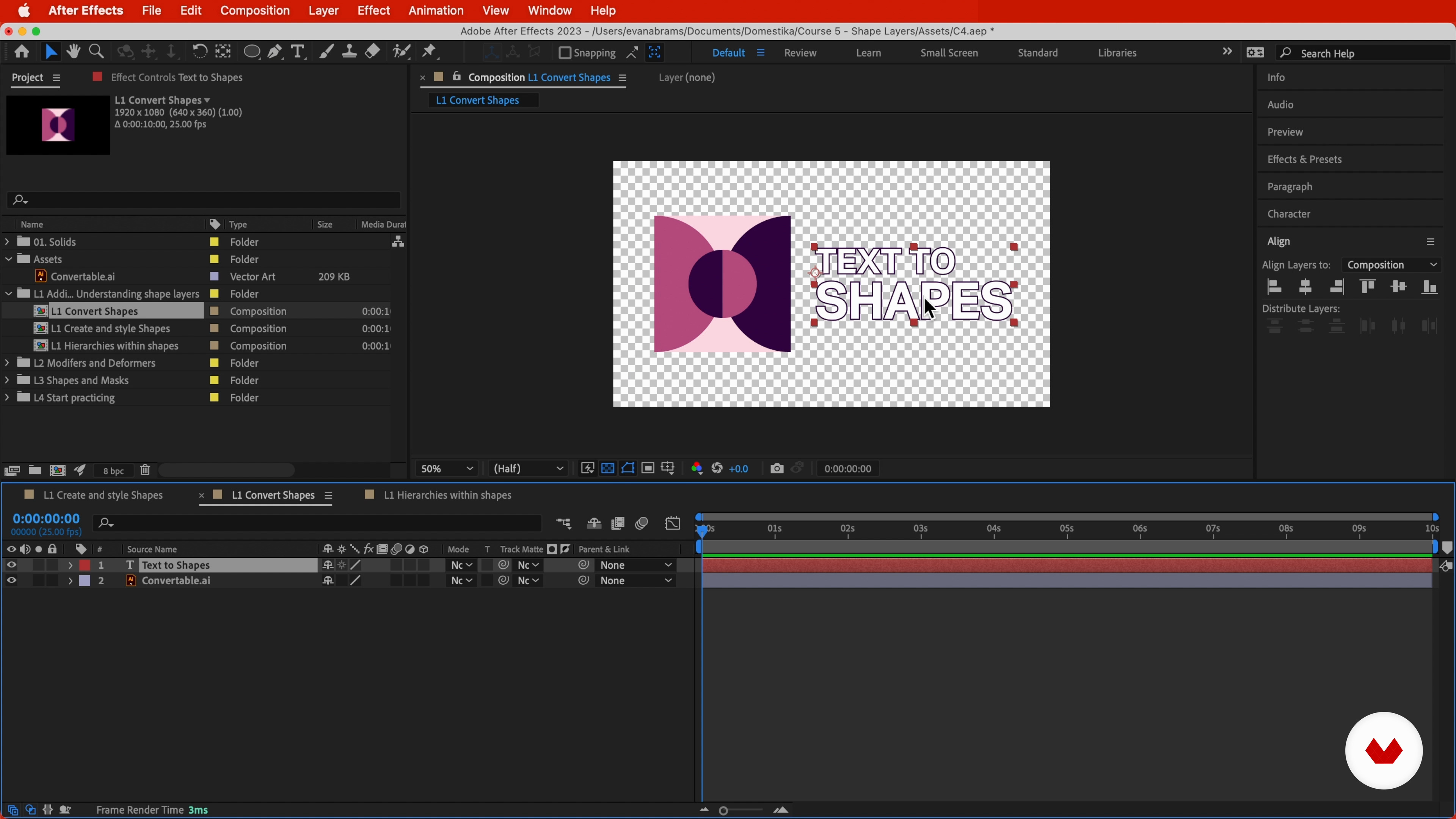 “Shape layers are how you create and interact with vector graphics inside After Effects. A solid understanding of the shape layer system will help you create assets inside the app and bring them to life procedurally. But first, you need to understand how to create and convert the artwork as shape layers. ”