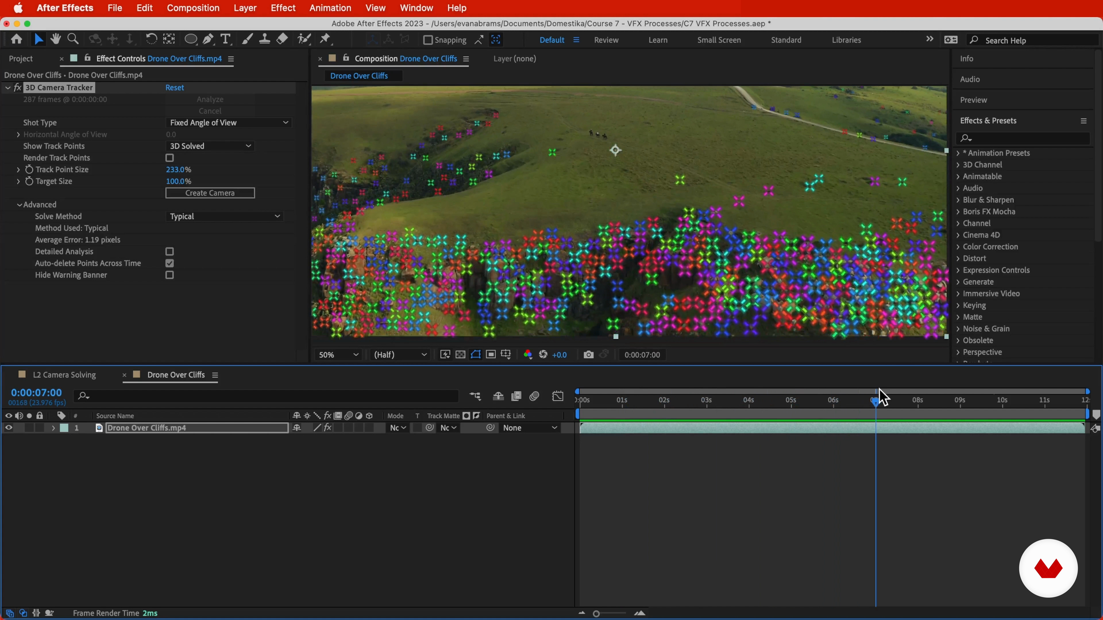 In this video lesson Evan Abrams addresses the topic: Camera Solving, which is part of the Domestika online course: Course 7: VFX Processes. Explore advanced tracking techniques to integrate graphics and visual effects with real action sequences. Transform your visual skill with precision and creativity..
