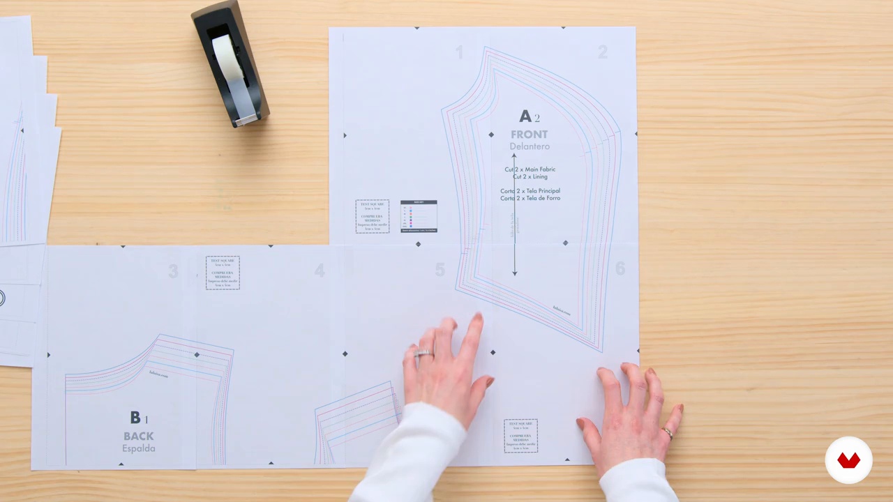 “In this lesson, I’ll show you how to find your size, and how to assemble the paper patterns before we cut them on the fabric.”
