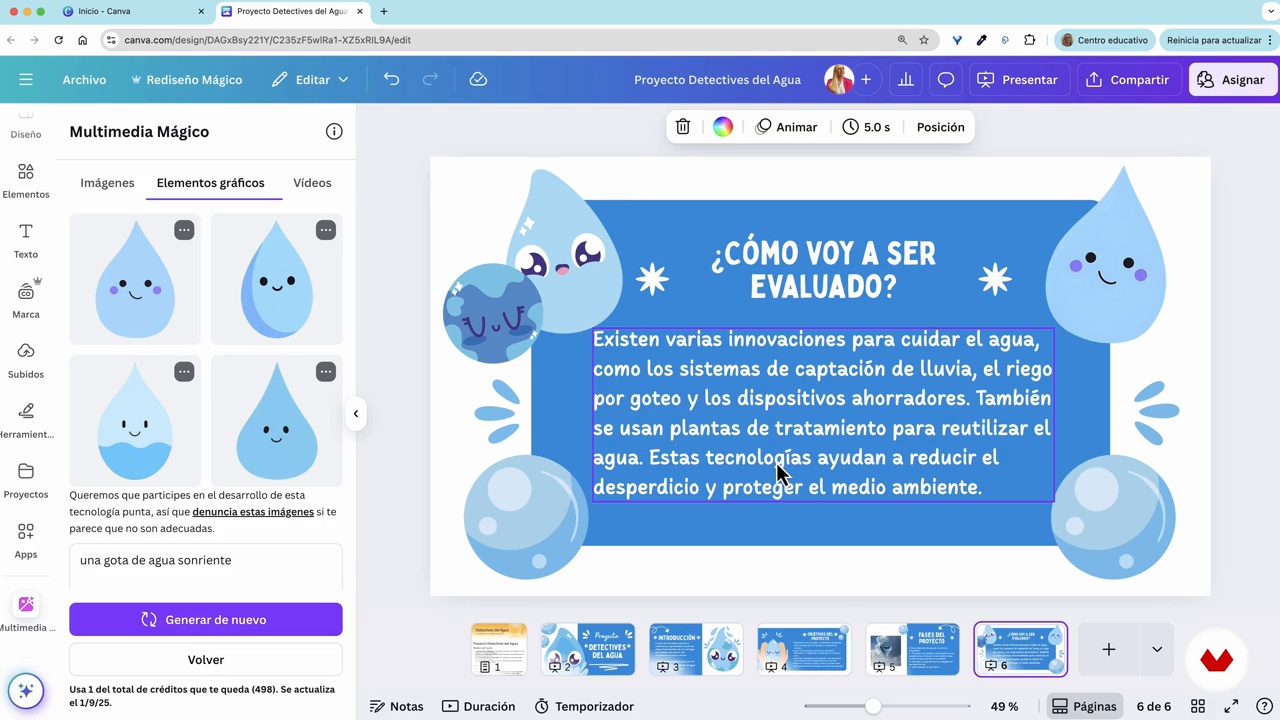 “You'll discover how Canva's artificial intelligence can help you design educational projects faster and more creatively. You'll learn to use the magic writing tool to draft objectives, instructions, or activity descriptions, and explore magic multimedia to generate custom images that illustrate the topic you're working on. ”