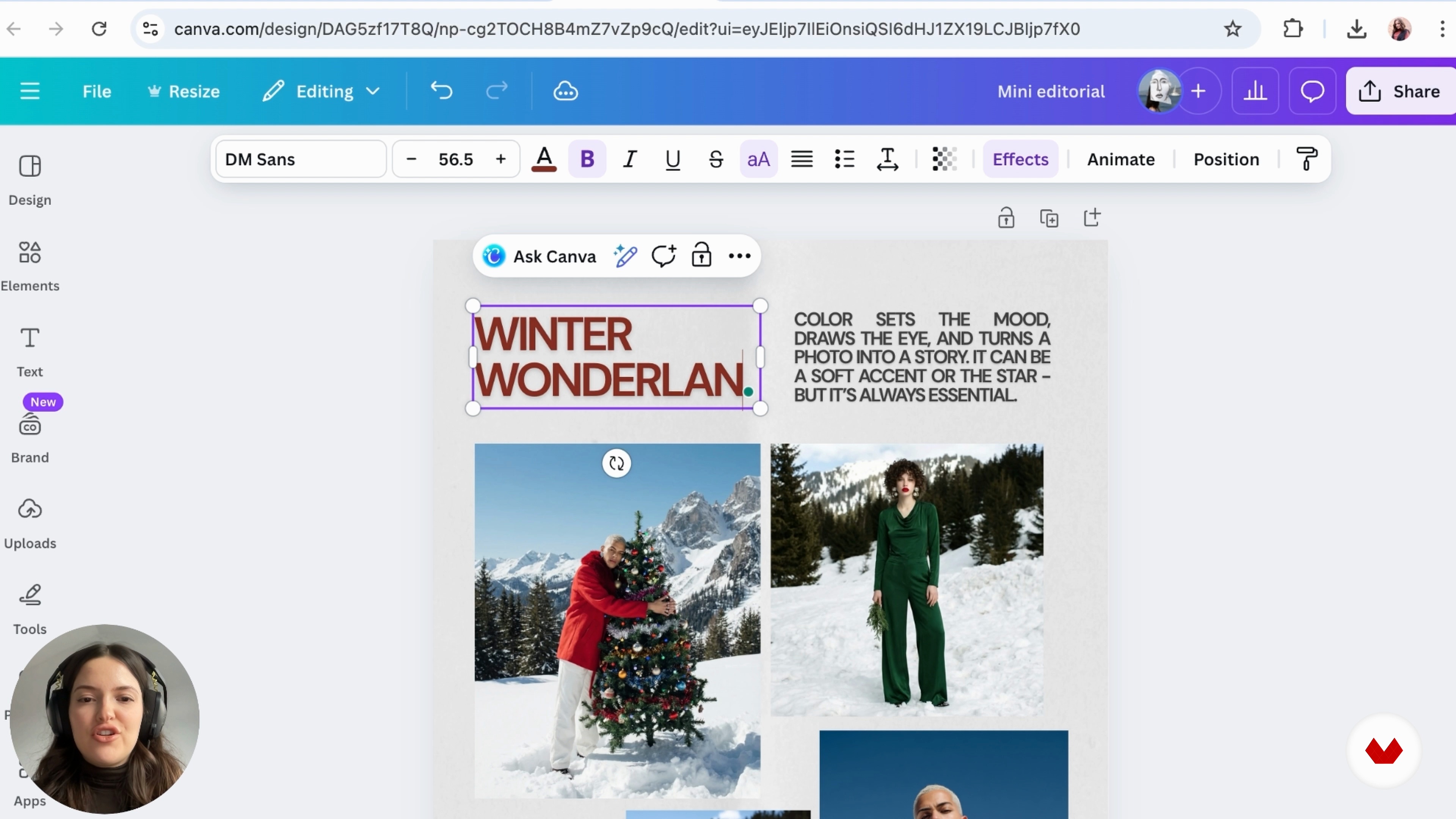 “And the last lesson, we're going to create our mini editorial. with the photos we created in my journey in Hixfield AI that we created in our mood board and we put Okay, so what we're going to go ahead and do to create our editorial is go to Canva and templates and type in something you want to create. whether that's portfolio or editorial. I want to type in editorial and choose a template. I'm really liking this one that came up, so I'm going to go ahead and click customize template to start making this into my editorial. what's important for our mini editorial, is the story. Behind many e...”