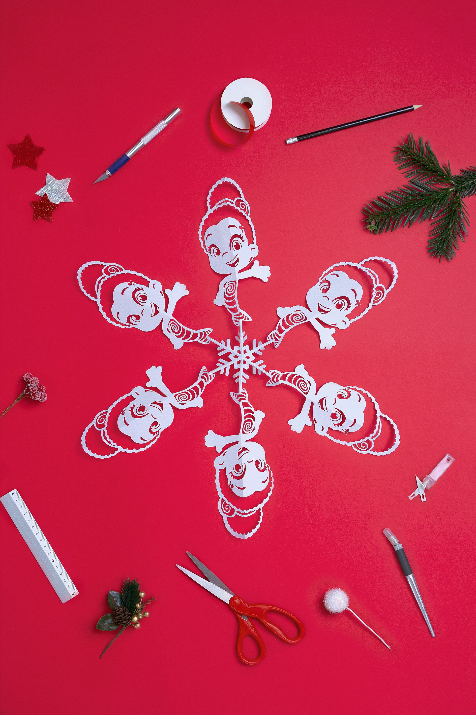 Nick Jr. contact us to create some colorful papercrafts snowflake sets using as main hero some of their tv show characters, as Everest from Snow patrol, Zooli from bubble guppies and Baby Shark.