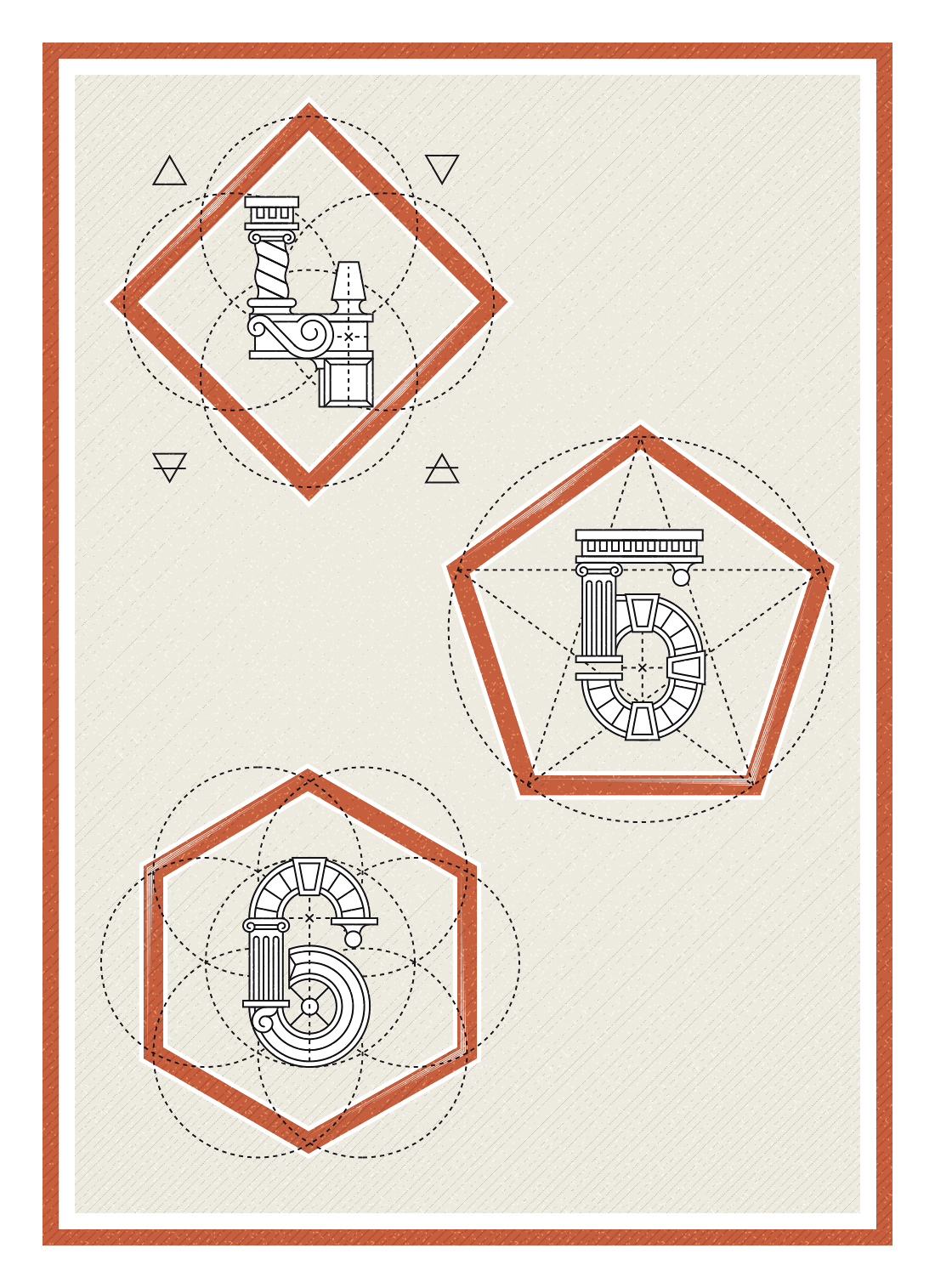 Yorokobu is a Spanish magazine that focuses on creativity, innovation, technology and design. Each month, different designers contribute to the “Numerography” section by creating a set of numbers and in issue No. 48 we sent in our Roman Numbers. These Roman numbers are the offshoot of classical typography and architecture; the stems become Ionic columns; the shoulders, semicircular arches; and the crossbars, friezes. Between them, they also work as modules to play with and create small constructions. Symbolically, in the same way that the objective of mathematics is to discover the universe, so numbers are the bricks that form that universe.