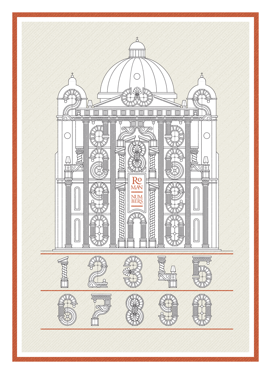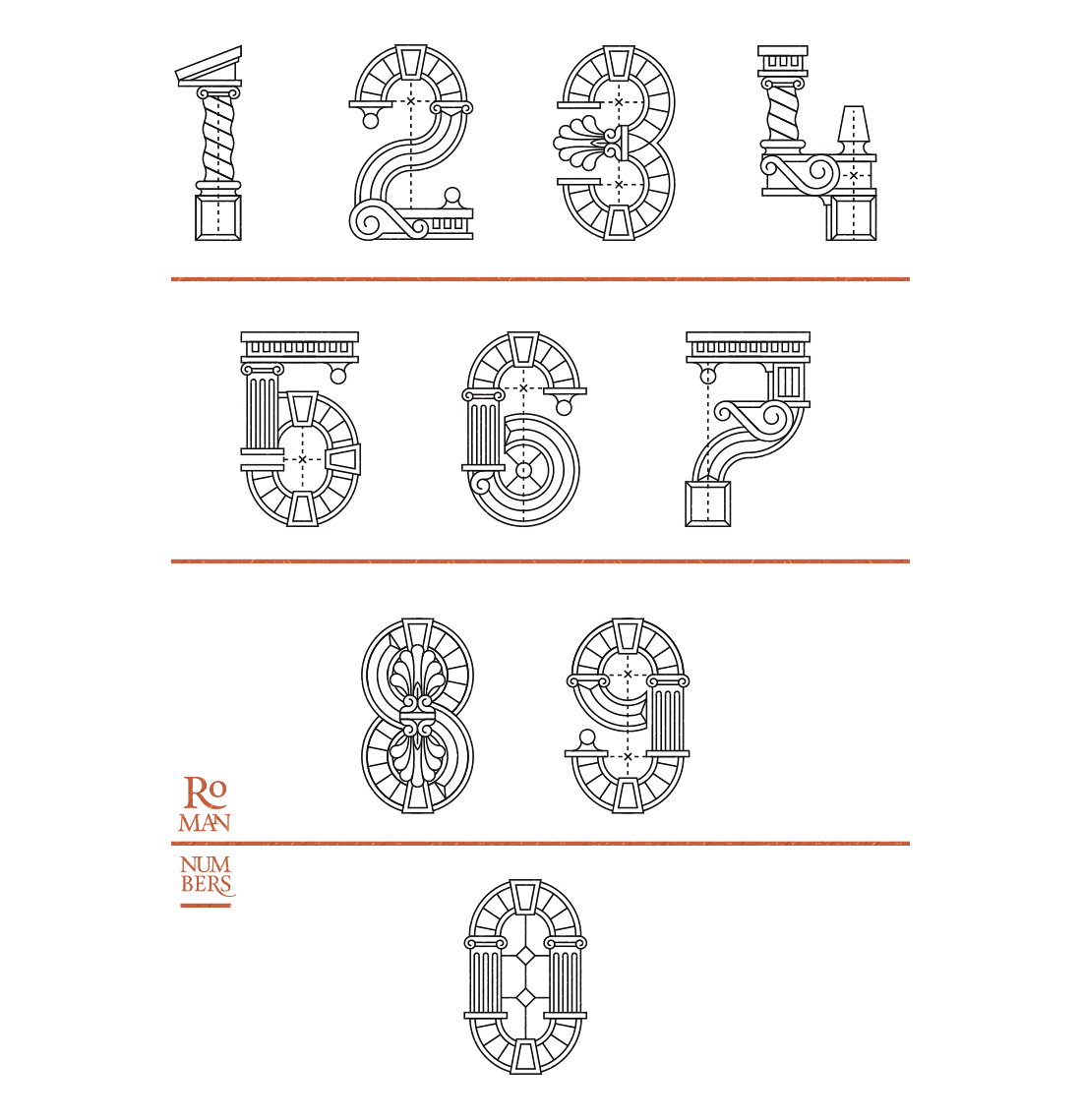 Yorokobu is a Spanish magazine dedicated to creativity, innovation, technology, and design. In the Numerography section, different designers contribute each month by creating a series of numbers. In issue 48, we collaborate with our Roman Numerals. This collection of Roman numerals is a product of typography and classical architecture: the shafts become Ionic columns, the shoulders become semicircular arches, and the arms become friezes. They also function as modules that allow us to play with them and generate small constructions. Their symbolic representation is that just as mathematics aims to describe the universe, numbers are the building blocks that make up that universe.