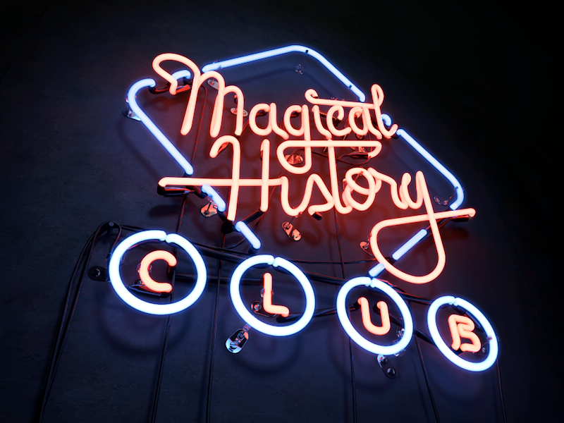 Lettering y render para la obra de teatro «Magical History Club» dirigida por Marc Crehuet y producida por Minoría Absoluta que se estrena estos dias en el teatro Coliseum de Barcelona.