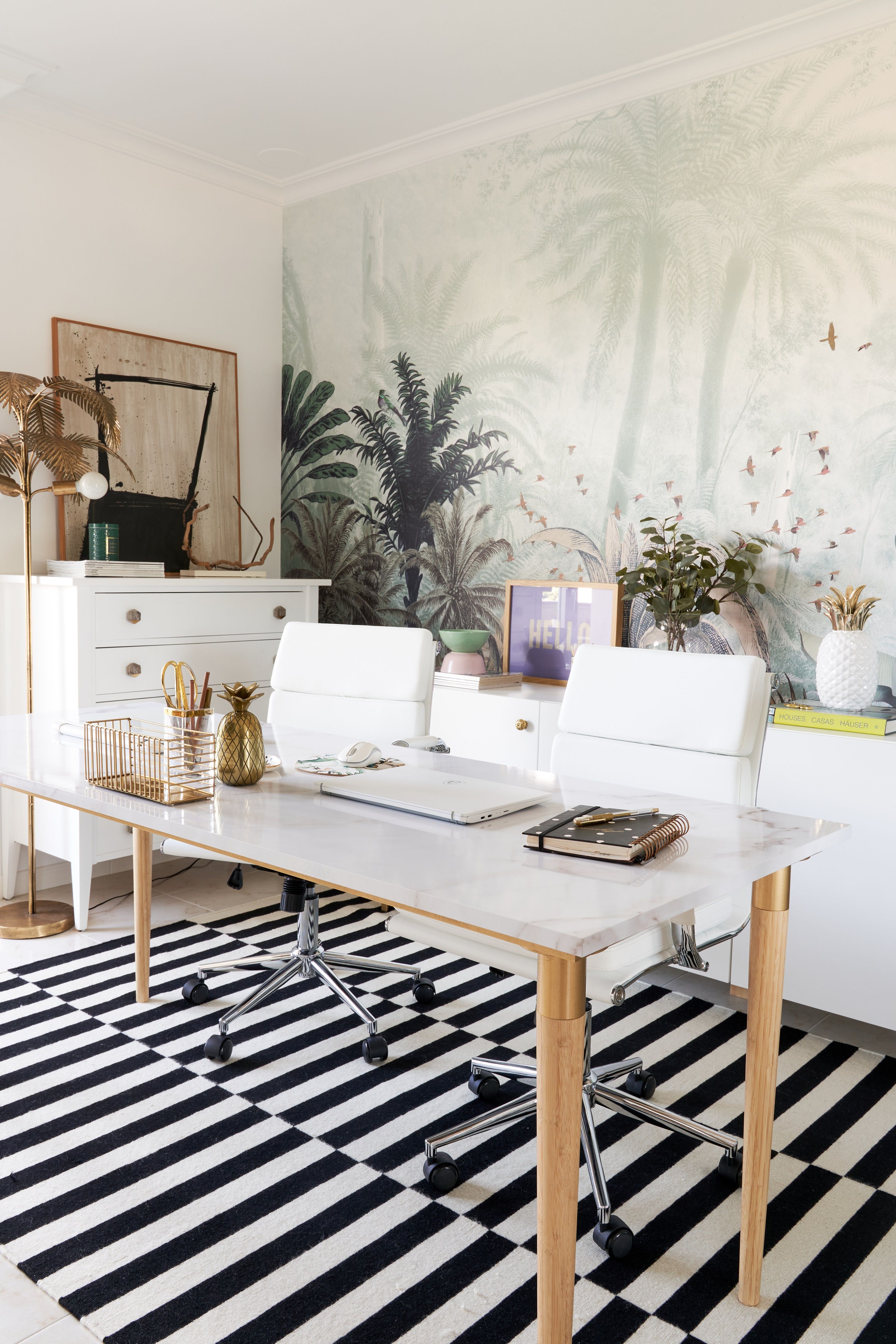 La situación actual ha hecho que cada vez más personas se planteen poder hacer teletrabajo y, por lo tanto, necesitan de un espacio específico en sus casas para poder hacerlo. En nuestro caso, esta habitación se ha transformado en una oficina práctica y fresca, además, con un marcado carácter corporativo.