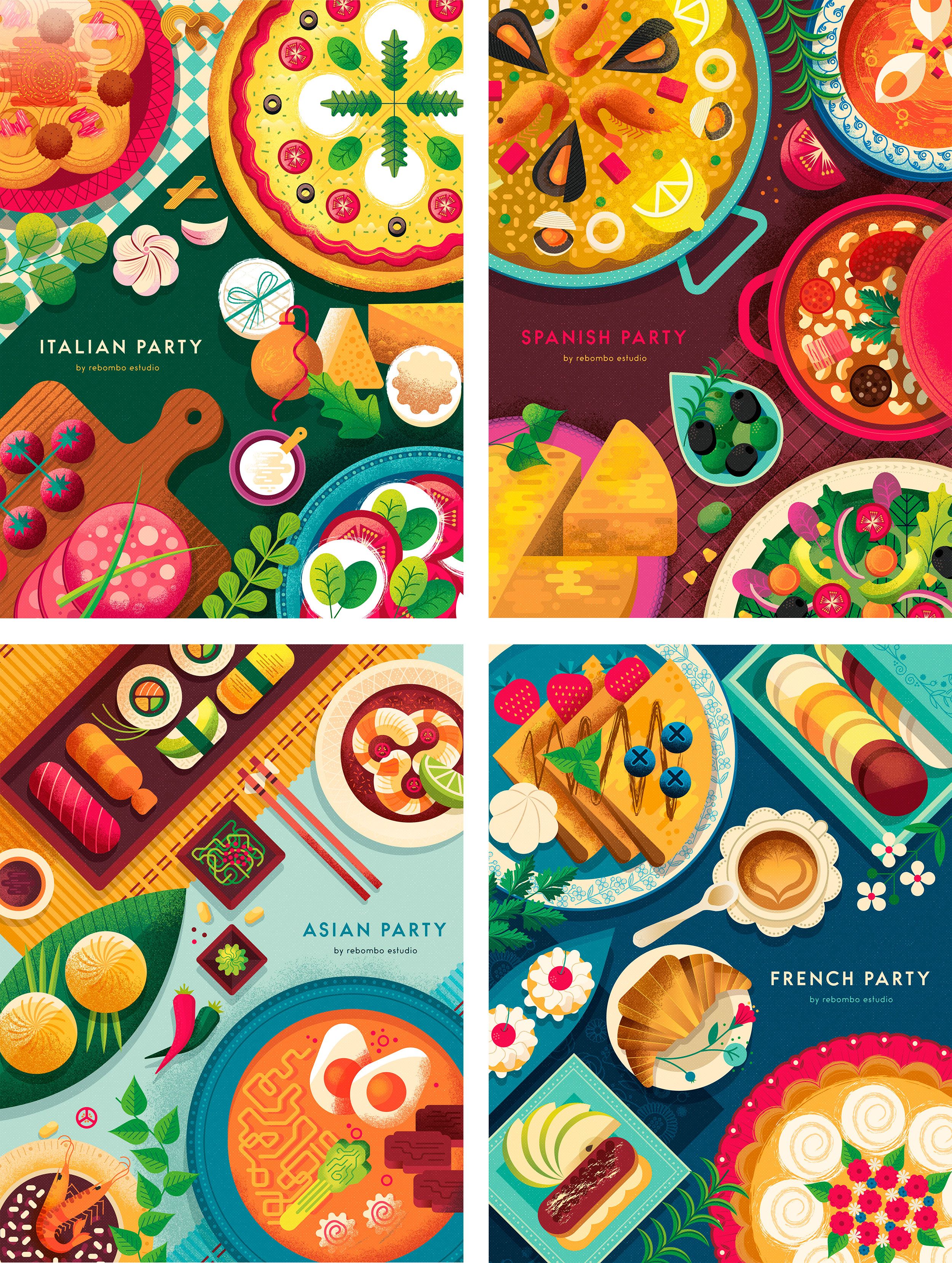 Serie de ilustraciones gastronómicas, que muestran nuestro amor por la buena comida :)