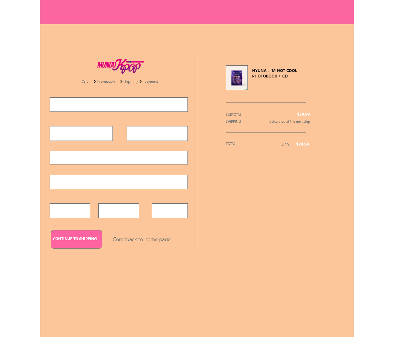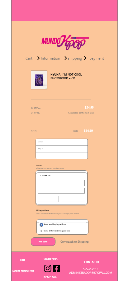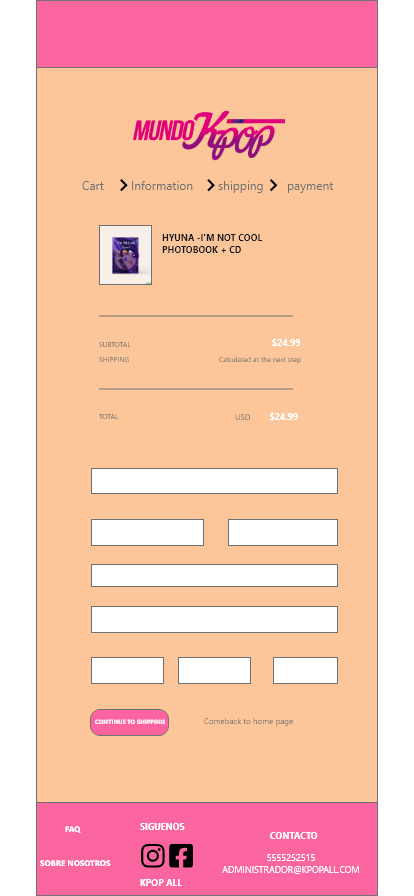 Use el logo de mundo kpop que encontre aunque la empresa es "Kpop All" Terminando me di cuenta que podria agregar estos como pestañas para que se desplazen y llenar el formulario Quise subir un PDF pero en proyectos no me deja