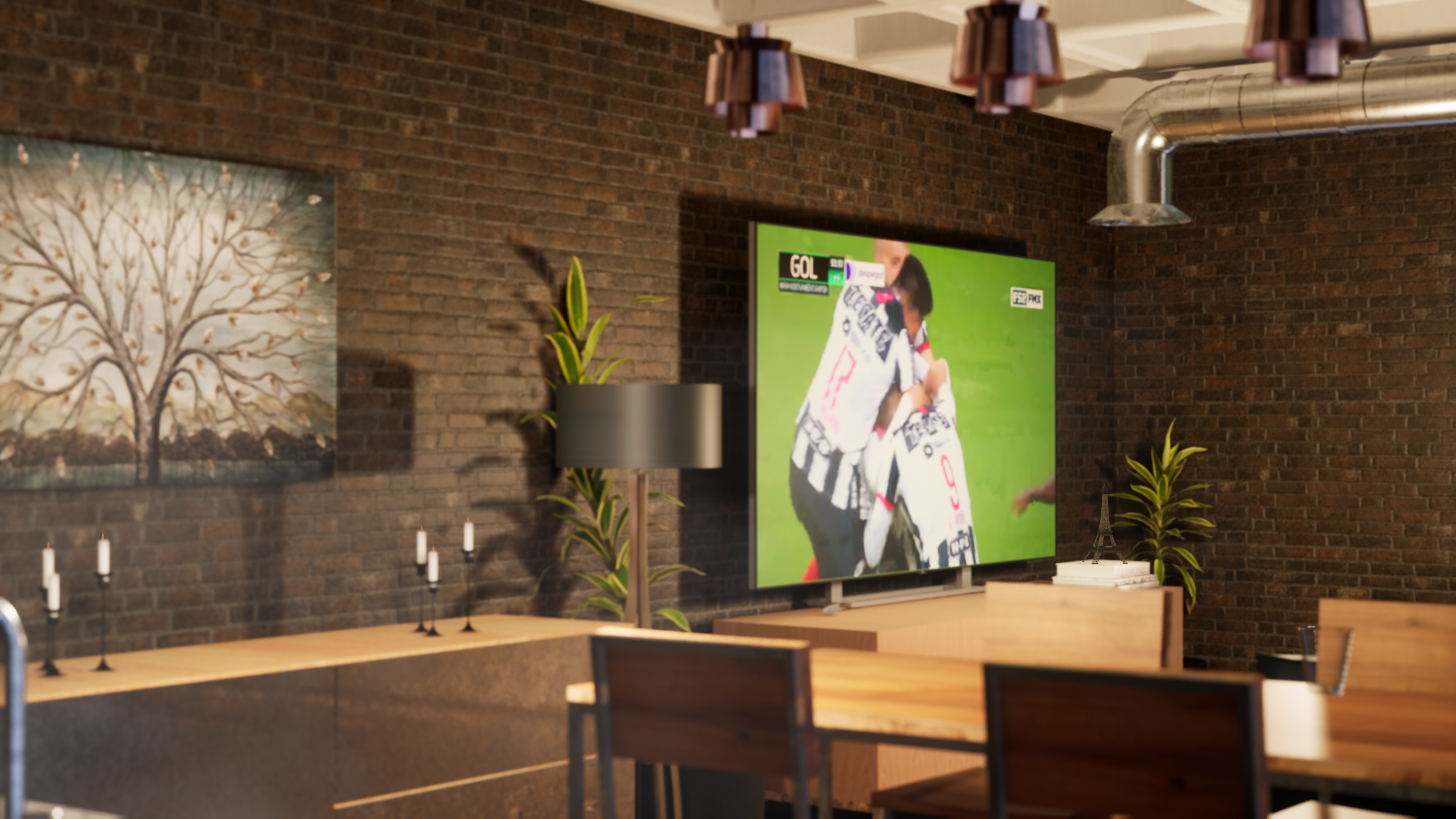 I would only change that sofa model. Organic shapes, such as wrinkled cushions, play an important role in making the viewer believe that what they are seeing may be real.
