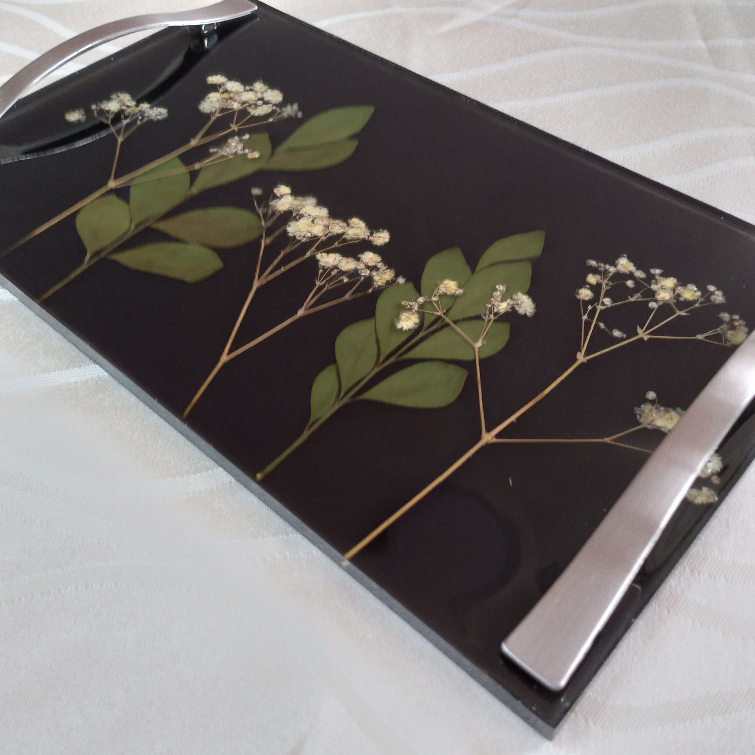 wow, what a beauty! I love these types of resin applique, I feel that they are objects that have a lot of value. The resin looks very well worked, and I like the handling of the three colors you gave it. Makes the tray sober and elegant.