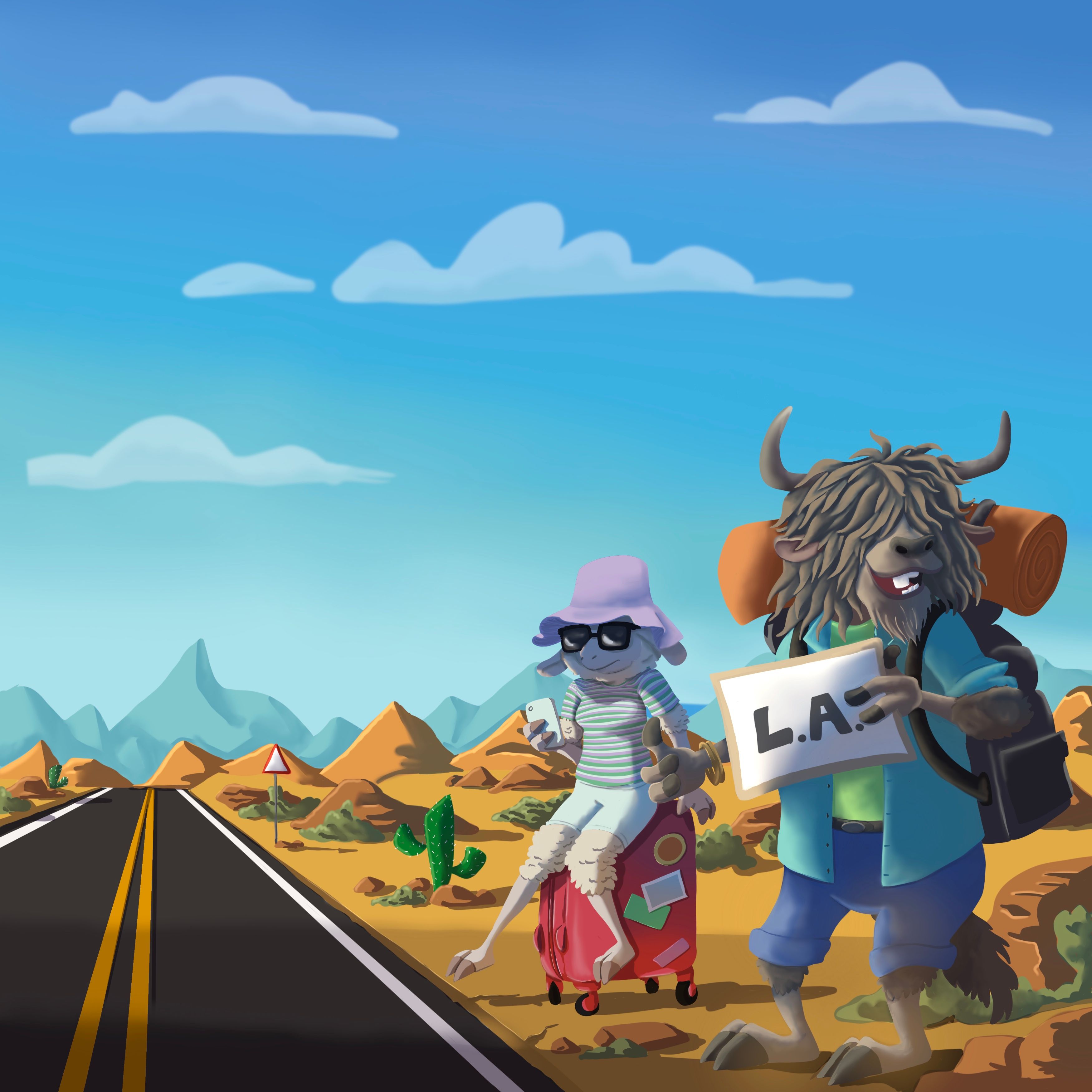 -His hand (autostop sign) is a very important part of the illustration, but now it doesn't stand out clear enough, a little bit blending with the character behind. So try adding highlights to it, Or reduce the contrast of the character in the back (try adding a very soft screen layer in between them).