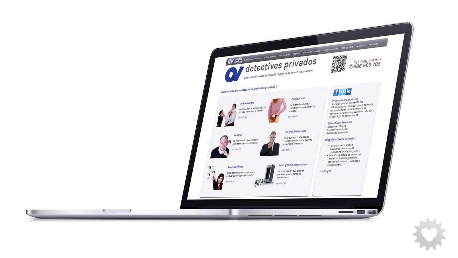 Página web www.detectivesprivados.com, hasta hace poco la web principal de Omniva Veritas. Creada según la imagen corporativa e 2012.