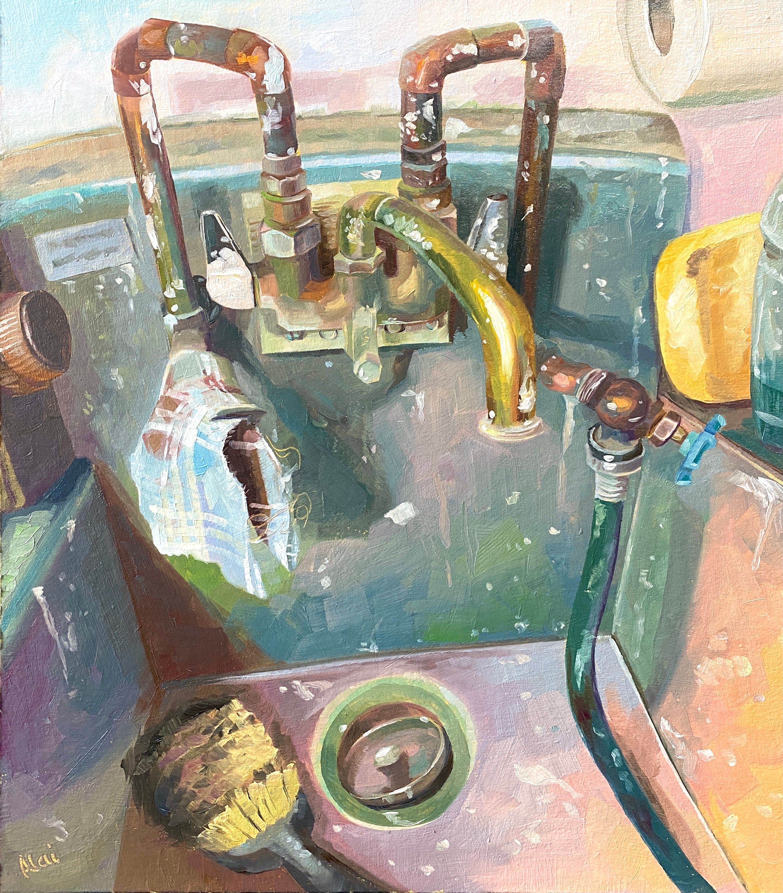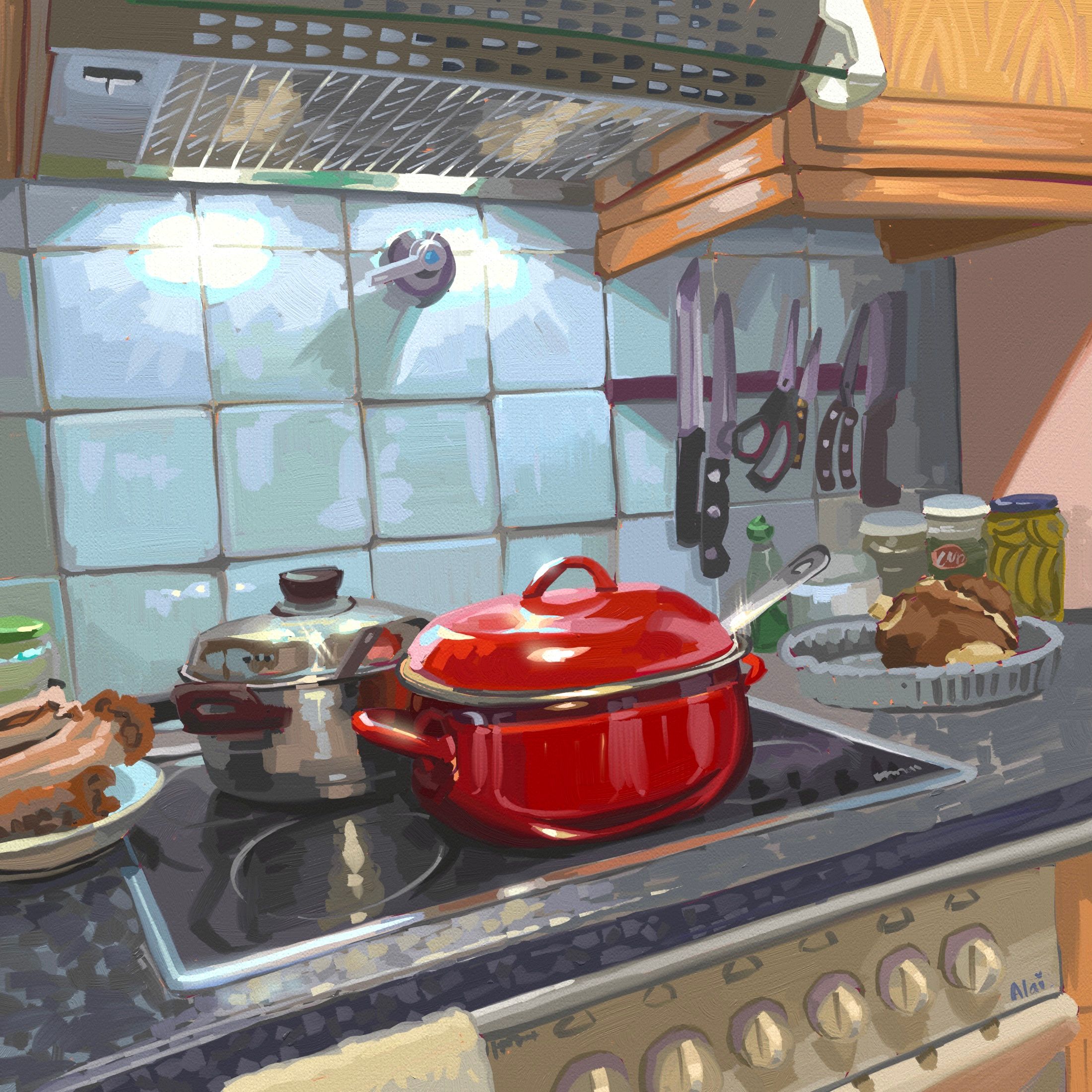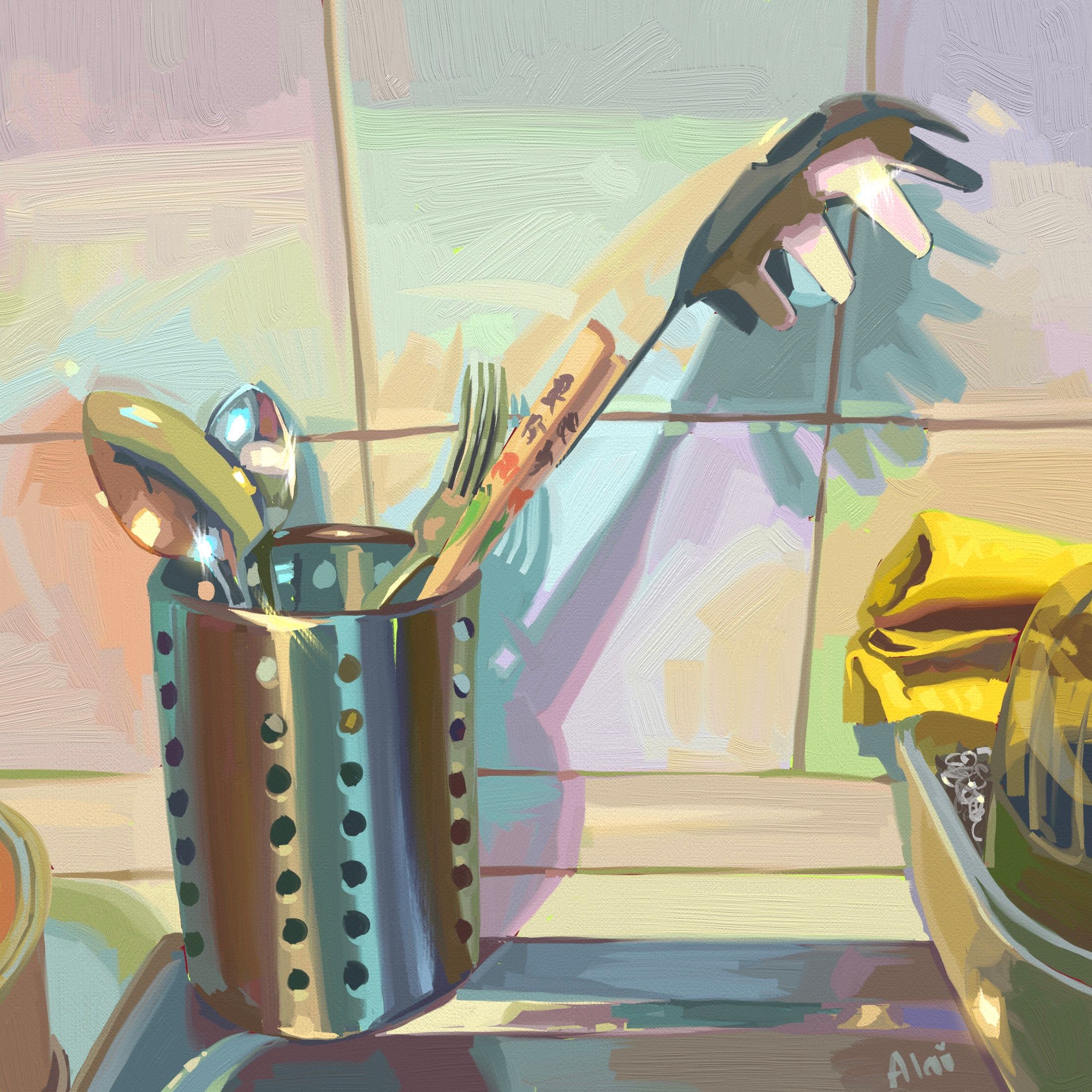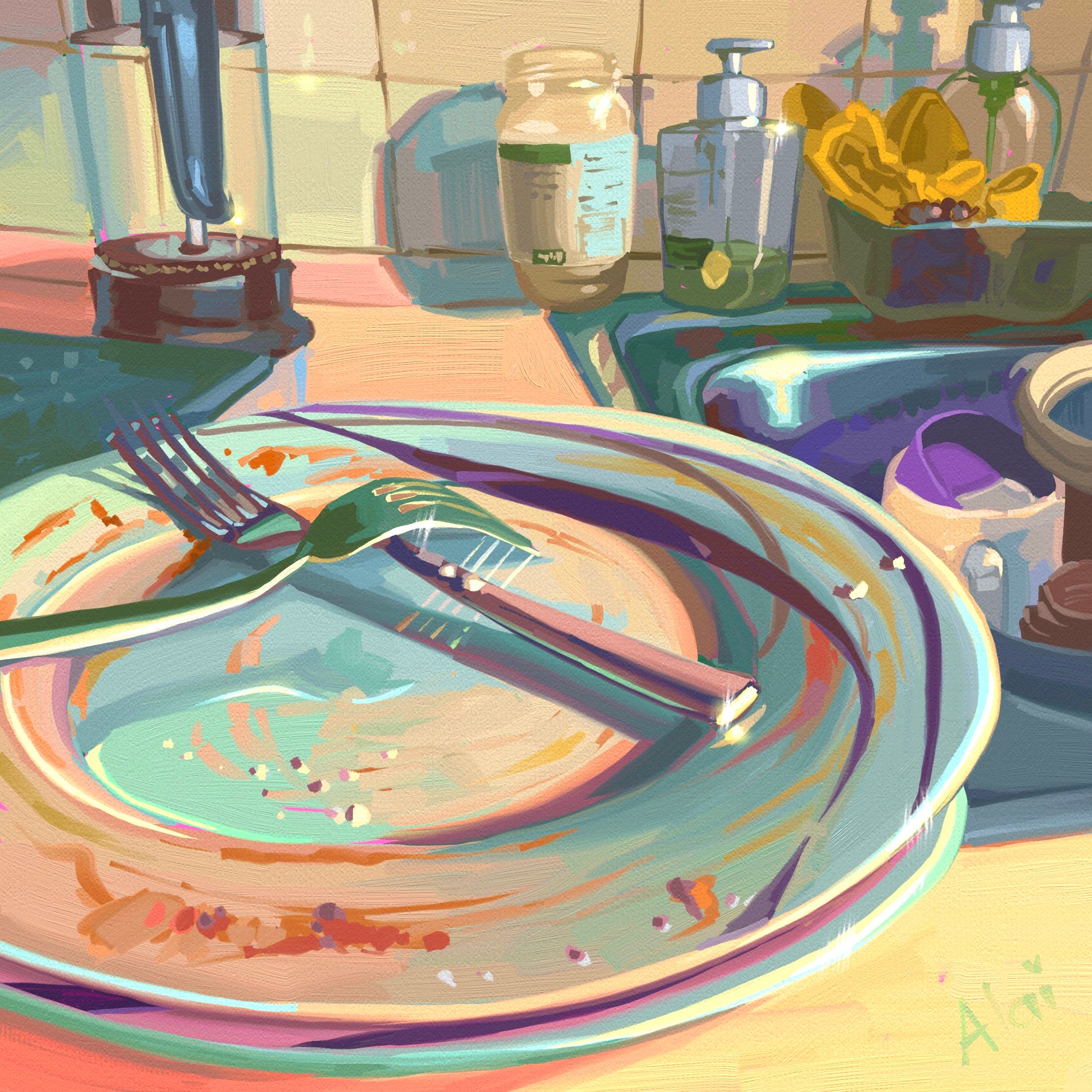 Como numerosas artistas han desarrollado en el siglo XX y XXI, muestro mi enfoque hacia la casa como tema donde busco las tareas o escenas más cotidianas y repetitivas dotándolas de una paleta surrealista y casi onírica.