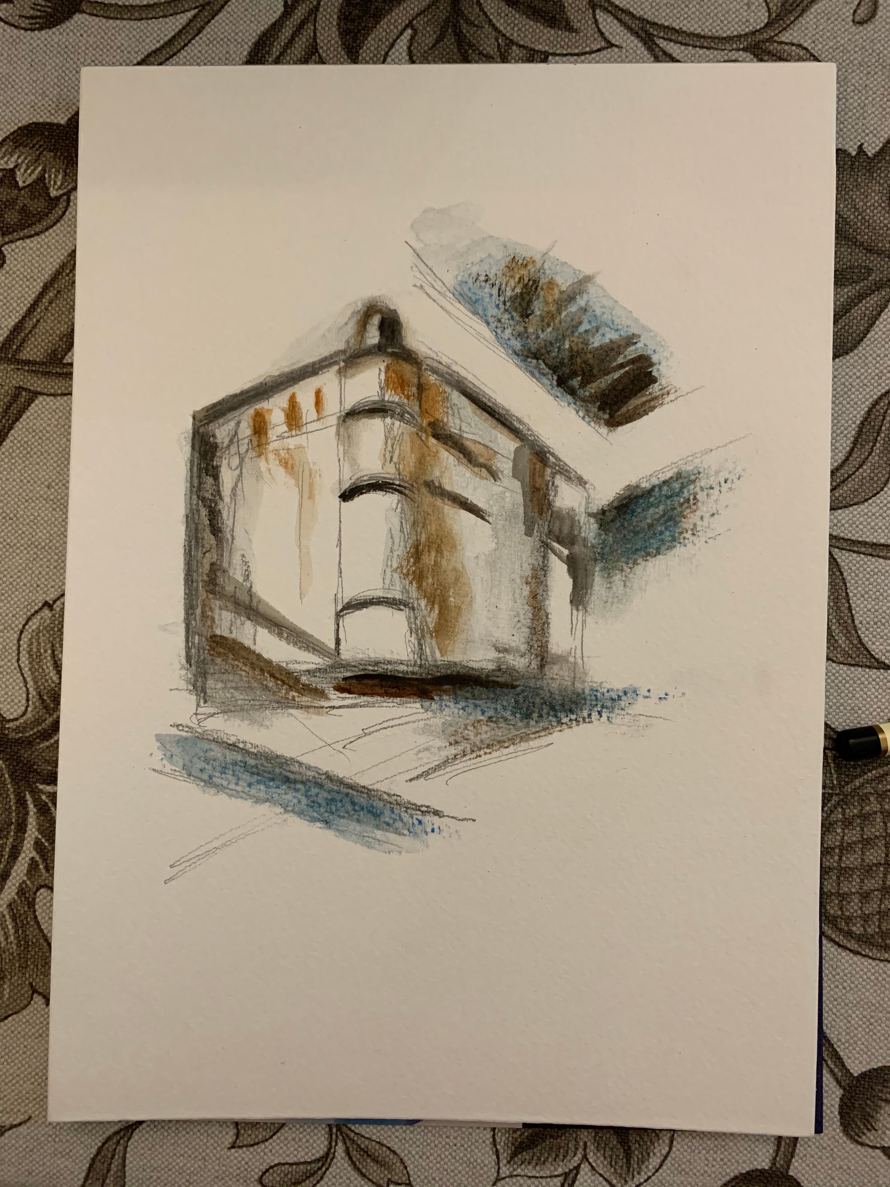 Meu projeto do curso: Desenho arquitetônico com aquarela e tinta