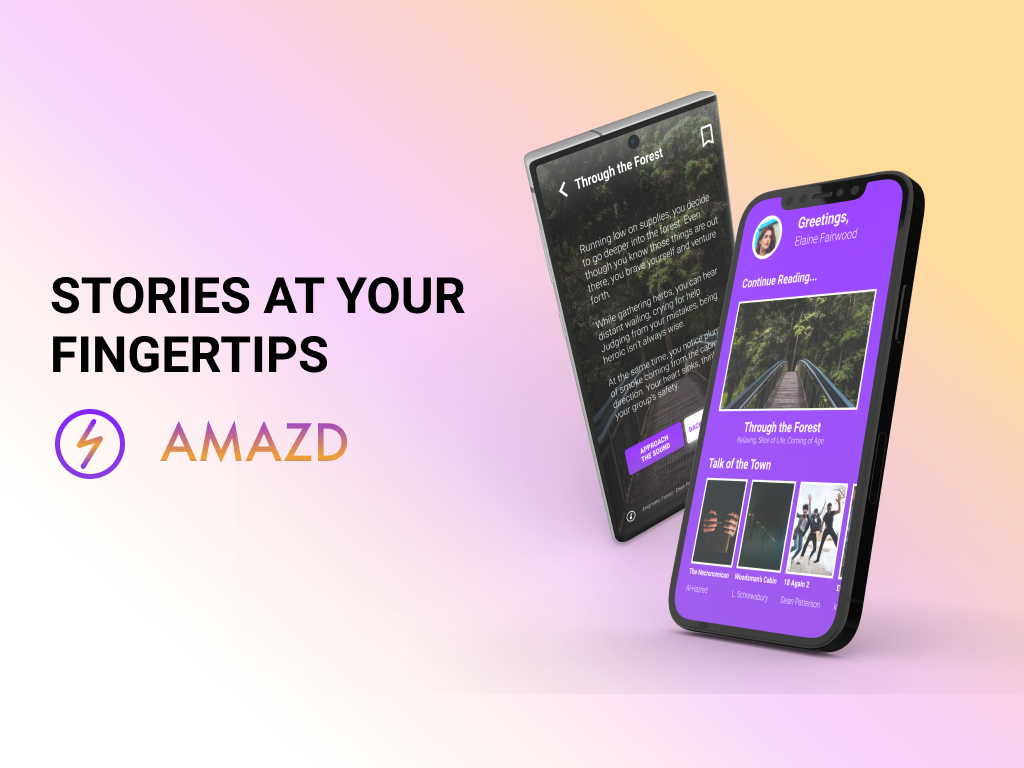 This is my design for an episodic Choose Your Own Adventure book app that I made called AMAZD. I had fun designing the app throughout the course.