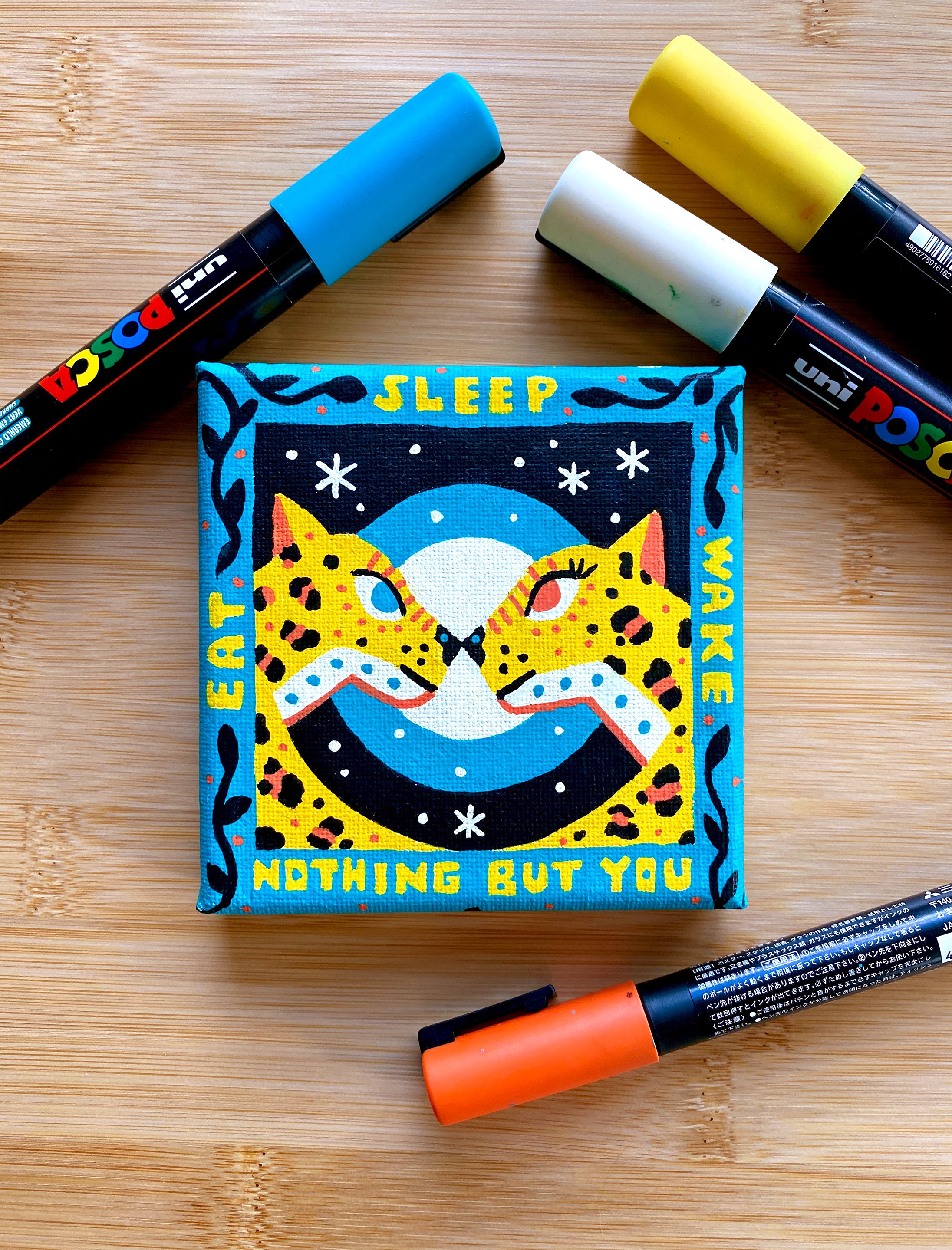 These are mostly made with Posca paint markers on small canvases no bigger than 5x7 inches, or in my little sketchbook.